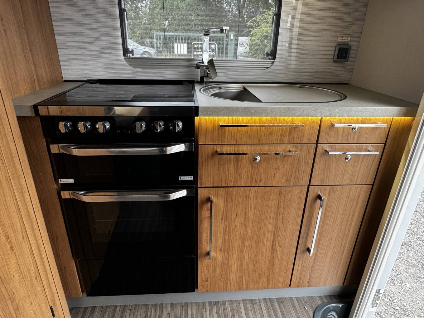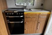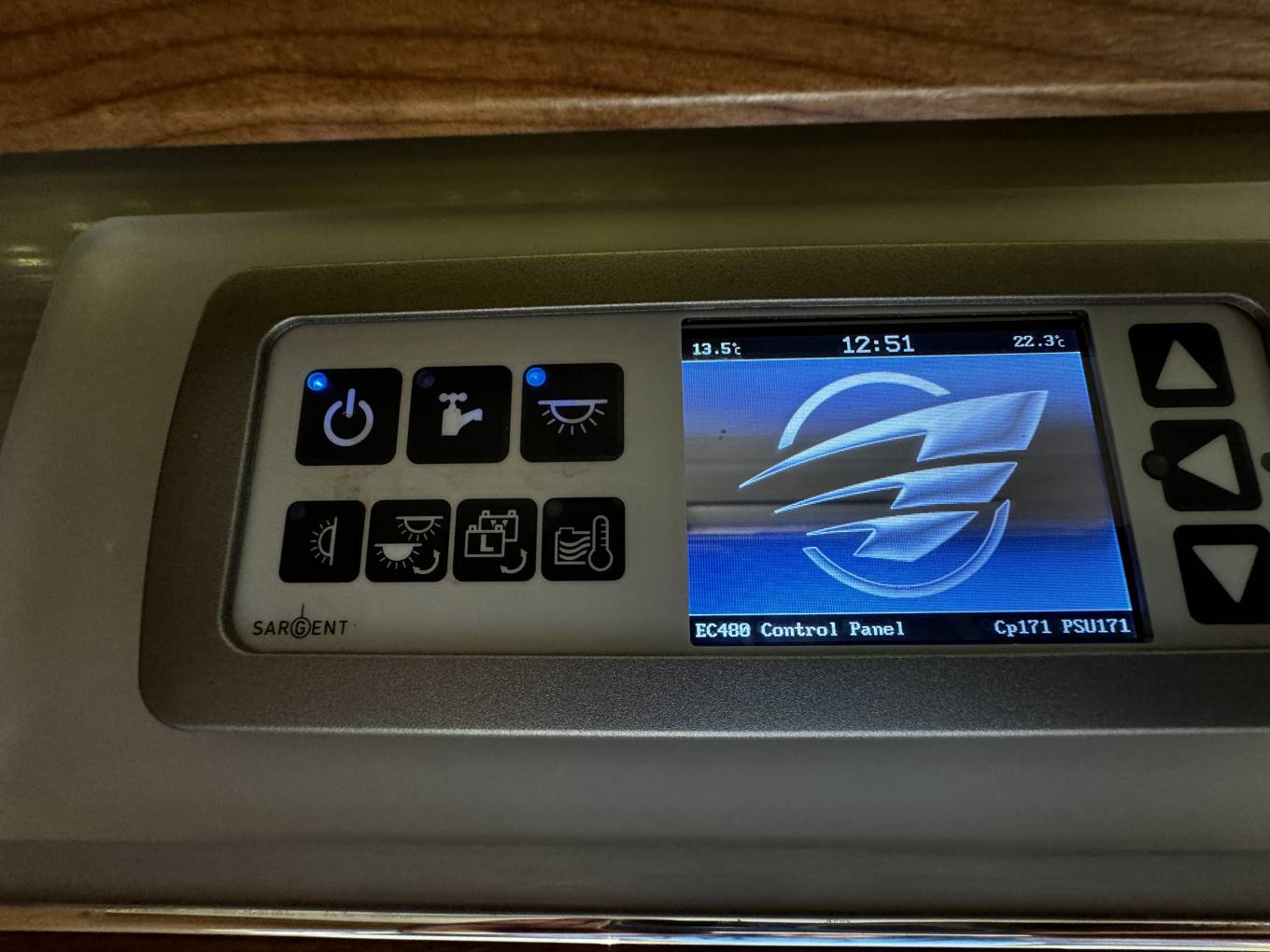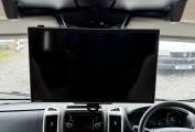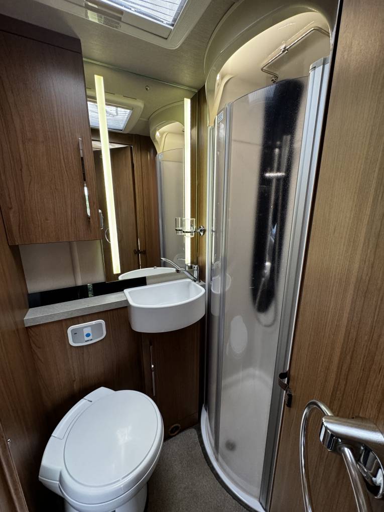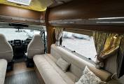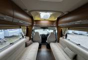 To the interior we have the Truma Gas & Electric blown air heating. Remis blinds to cab windows ,Entertainment system featuring with 15 inch Drop down Avtex TV monitor, built 7 inch Touch screen radio, CD, DVD player, a second Avtex TV in the lounge radio Digital Receiver, reversing camera. End Kitchen with Full cooker, oven, Grill and dual fuel hob, stainless steel, microwave oven and sink with draining area, 3 way Fridge with freezer, Locking soft close drawers, under counter lighting. Washroom with Separate Shower enclosure, Washbasin Vanity cabinet, mirror and cassette toilet. Two long comfortable side sofa’s which make up into a large double or two generous single beds. A large Foldable dining table and swivel captain’s chairs provide an ample dining area that could accommodate 6 people if required.