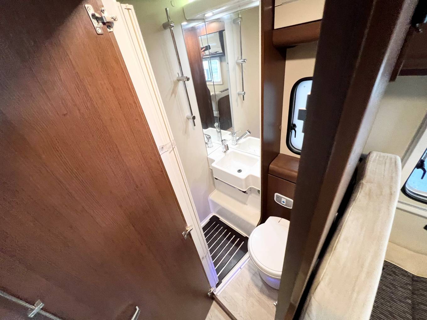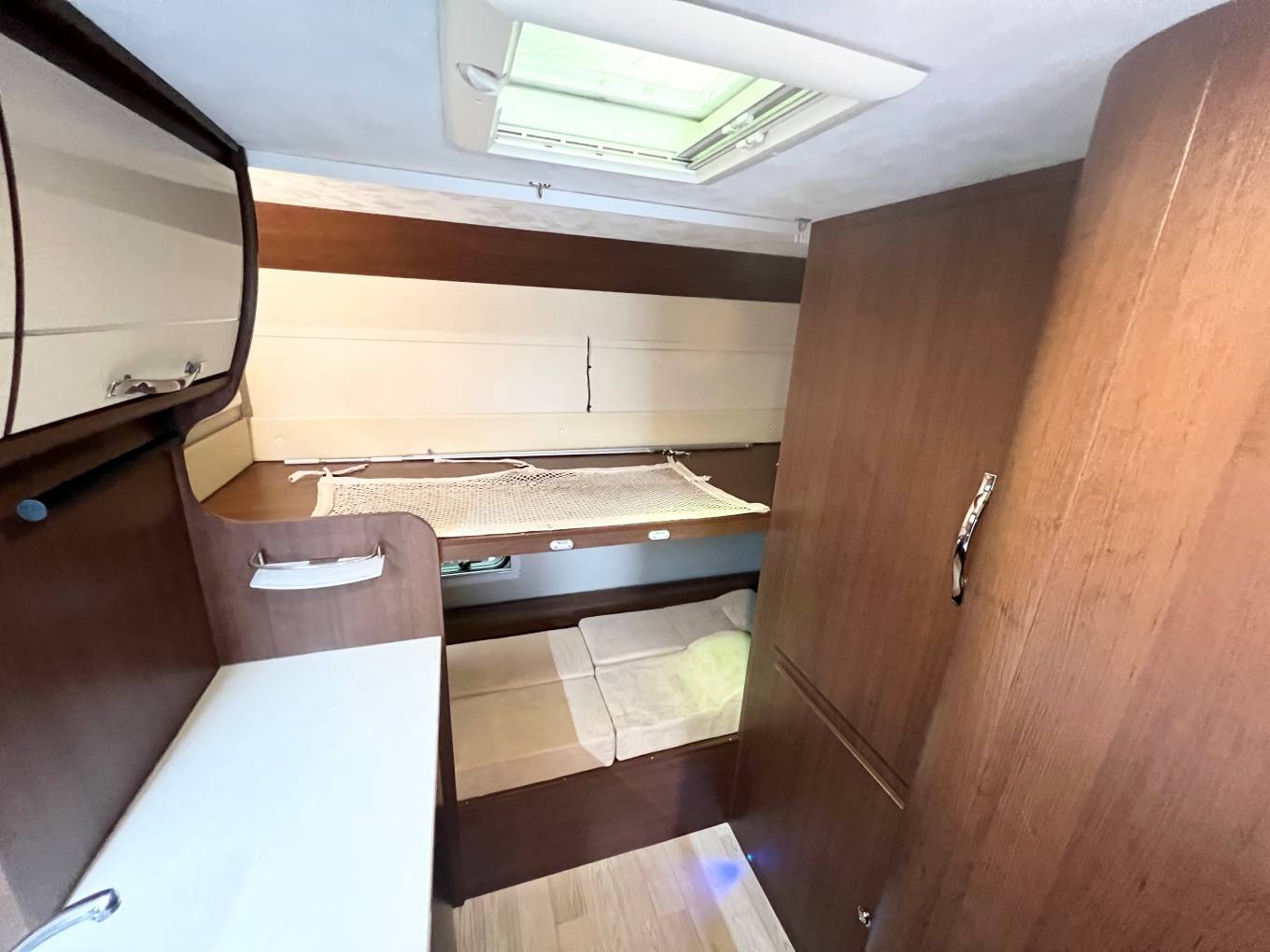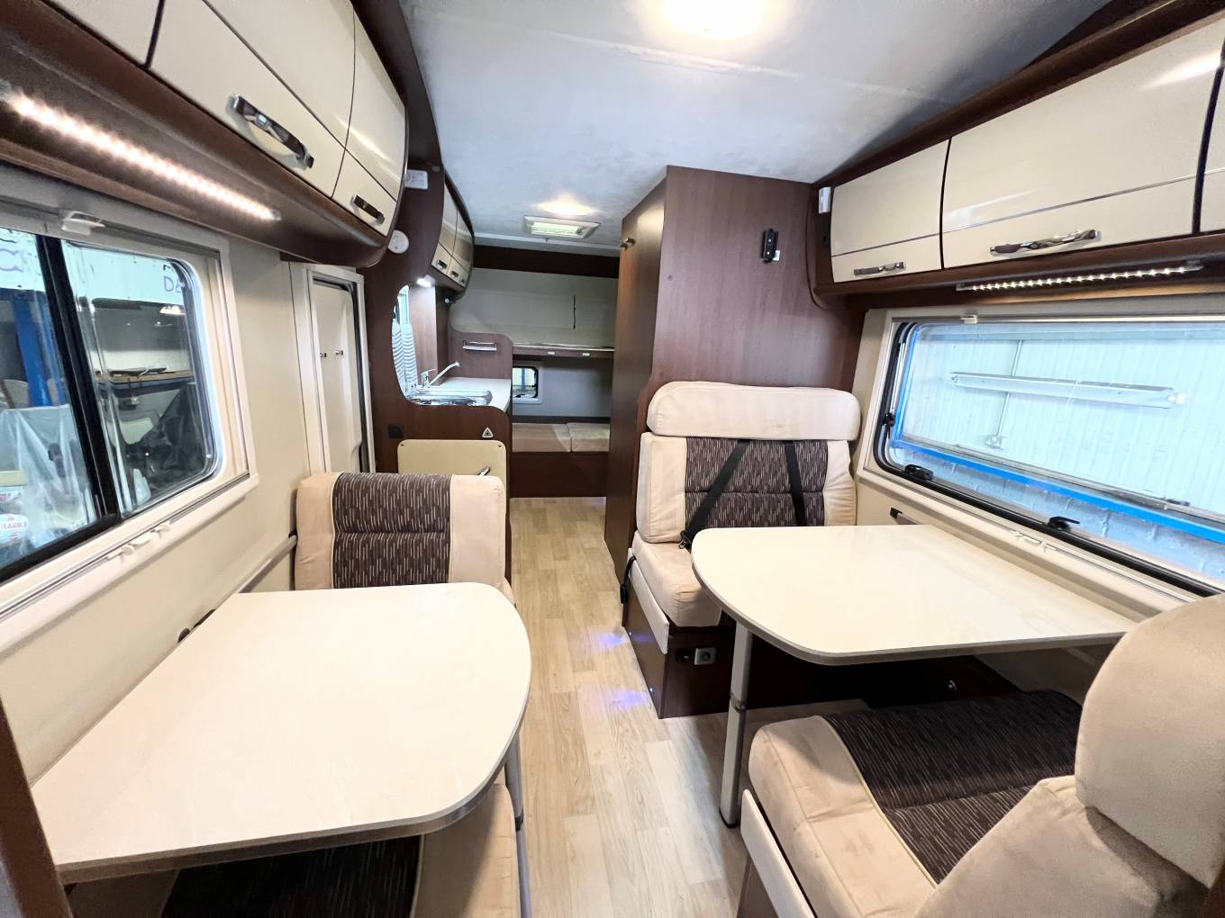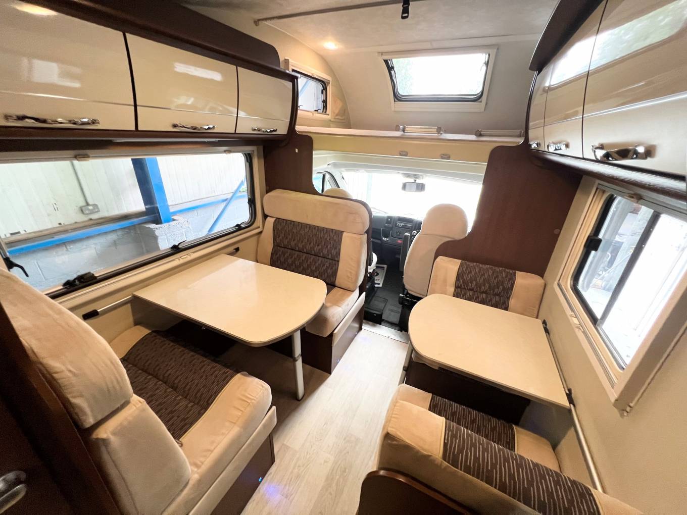 This Motorhome is designed around family life, with a large, spacious front dinette area, At the front of this family friendly motorhome you will be greeted by the impressive lounge/dinette which converts to an easy-to-build double bed at night time, making the first of many sleeping arrangements. This dinette includes a table which is very convenient at meal times for the whole family to sit and enjoy together. This area also includes 4 extra belted travel seats of which two are lap belts, At the rear of the vehicle, located at the bunk beds, A fun versatile sleeping arrangement suitable for both children and adults. The final of the sleeping arrangements can be found directly above the cab. This is also a double bed suitable for both children and adults and can be accessed via a ladder. The washroom really makes the most of what is always going to be limited for space, still equipped with everything you need while away on your camping holidays such as an electric flush cassette toilet, shower and wash basin. Add a little bit of adventure to every journey, this lavish motorhome is a perfect getaway option for a large family.