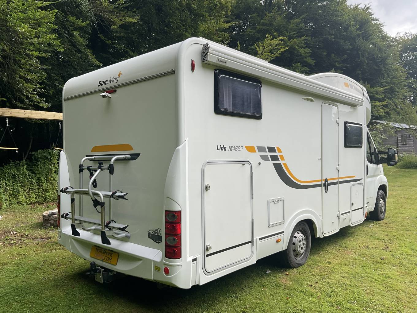 Externally there is an electric wind out awning, 2 bike rack and reversing camera, aerial on the roof, Satelite system, Wifi antenna, Solar pannel and doors on either side to the large rear garage. The vehicle has had a Thatcham alarm installed for insurance and added security.