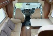 The front cab seats both easily swivel round to face the living space, offering additional seating for either relaxing or entertaining. Blown air heating and water heating that can be run on electric of gas.