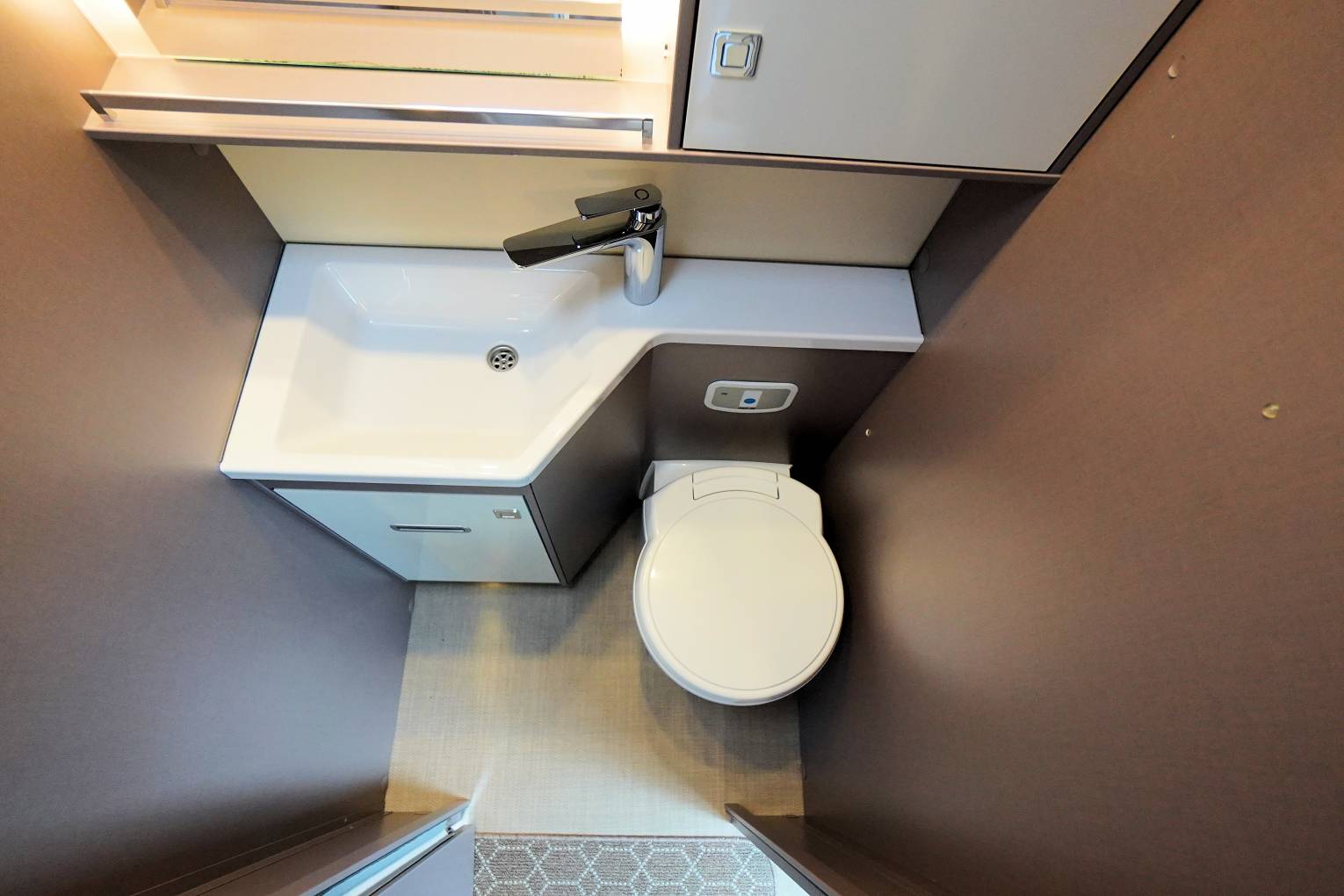 • Washroom with Thetford cassette toilet with electric flush and hand basin