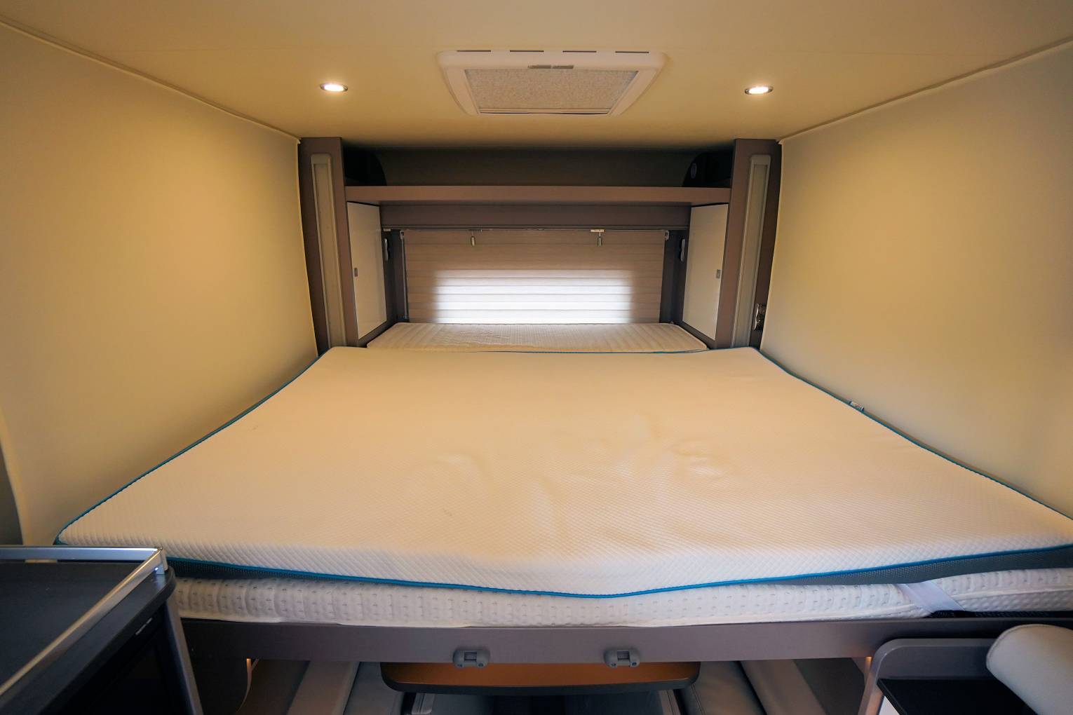• Large electric drop-down bed that can be used as a transverse or longitudinal bed
