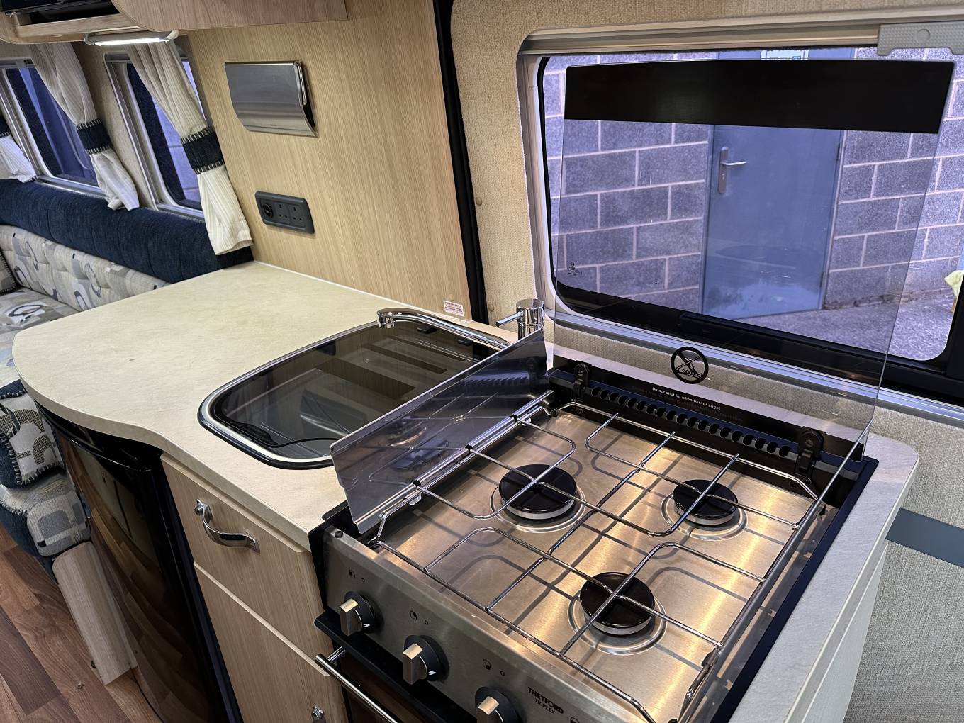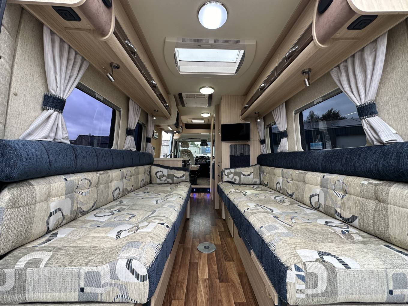 Here we have that fantastic ever popular Auto sleepers Warwick XL. In the less common Blue exterior this great Campervan comes fully loaded with extras to the regular set up. With the benefits of all the best Auto Sleepers features this is an ideal 2 berth campervan giving lots of space and headroom along with all the facilities and amenities that you would want whether holidaying in this country or touring abroad. An ample galley kitchen, good sized fully fitted bathroom and at the end of a long fun filled day the rear lounge can be made into two single beds or one large double. With the addition of an electric wind out awning, habitation air conditioning, solar panel and under slung lpg habitation gas tank this is a campervan that can take you to plenty of destinations whether you are staying at camp sites or going off grid.