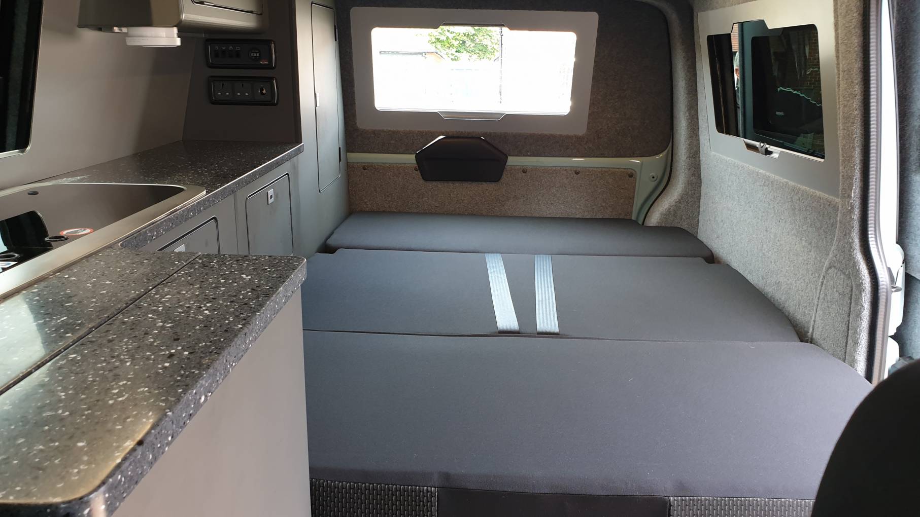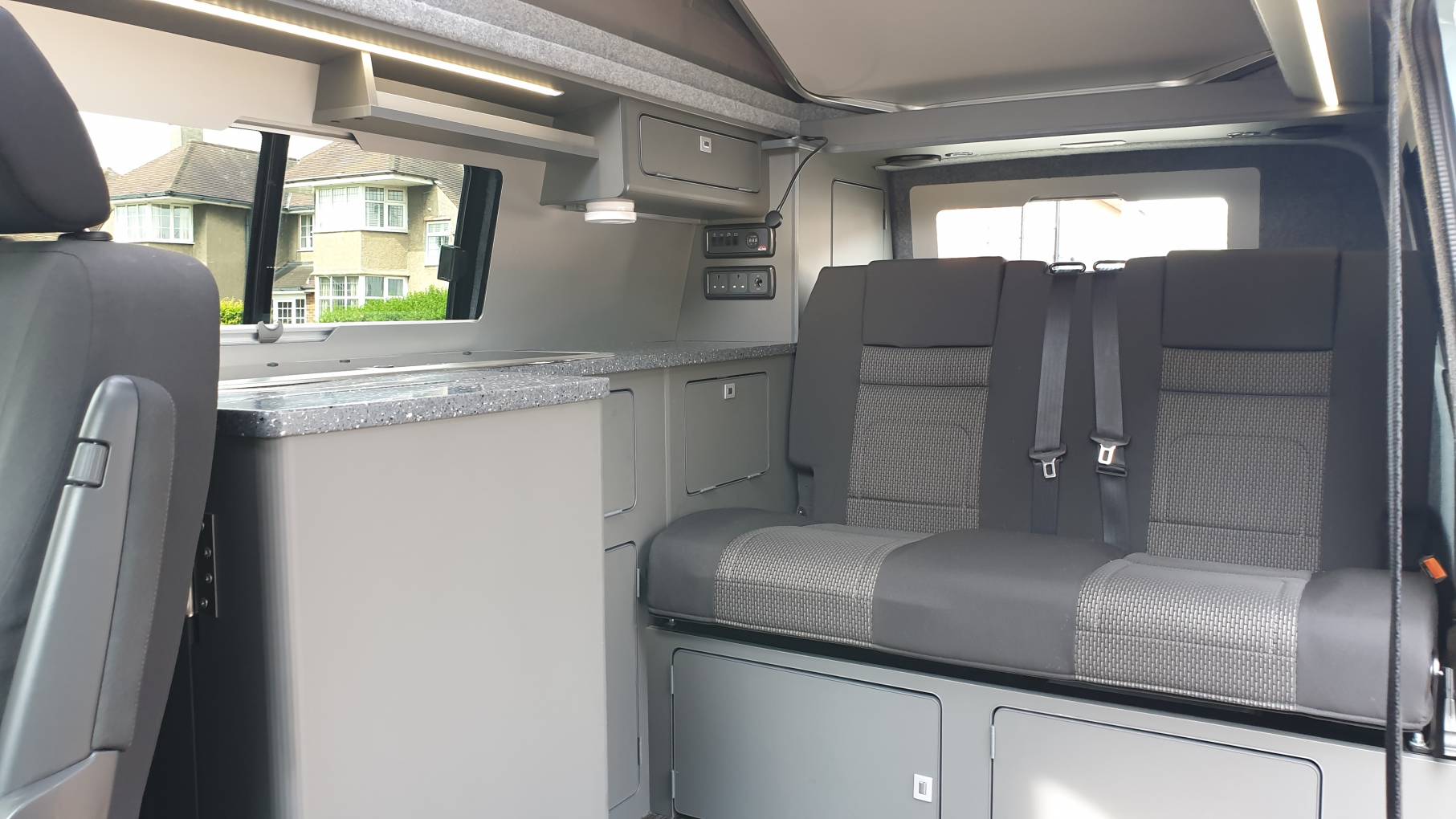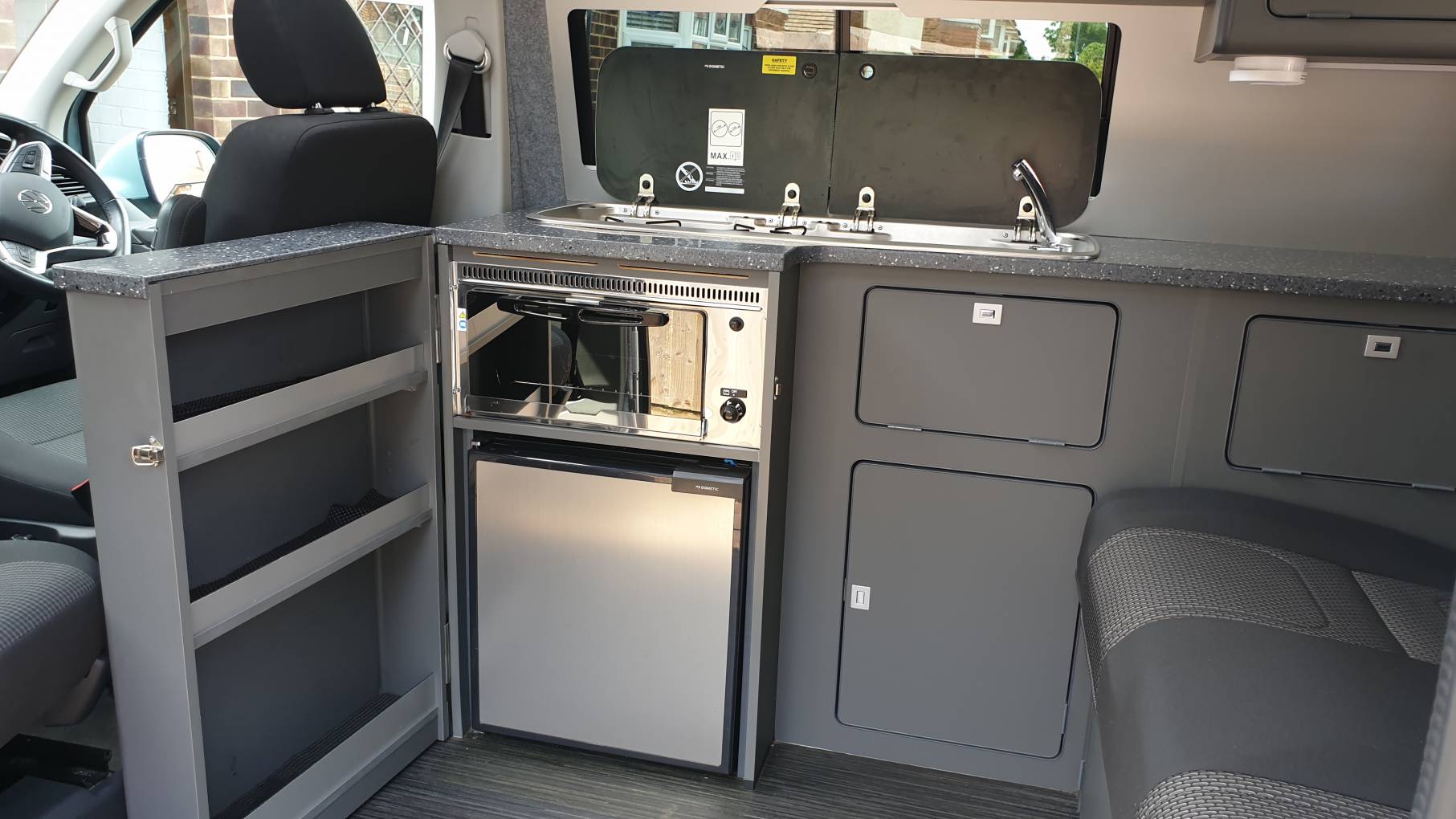 a 30ltr waste water tank. The vehicle comes with a 2 burner Dometic hob, sink