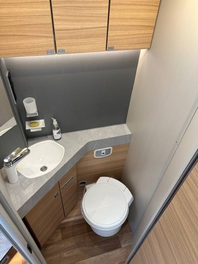 This stunning A Class motorhome benefits being 4 berth with 4 travels seats. The rear passenger seats are located under the passenger side facing bench lounge seating when required. The large drop down over cab bed gives the additional sleeping area to the large rear island bed bedroom. The rear island bed over garage benefits being height adjustable if maximum height is required in the Large external access garage. Spacious kitchen with sunken sink with flush counter top cover and 3 burner gas hob with split glass lid. ample storage both over and under counter. Thetford oven/Grill with grill tray in unused condition. opposite the kitchen is the low energy 3 way fridge freezer. next to the fridge freezer is the Avtex TV with 45 degree tilt wall bracket. Washroom with ample storage and Thetford toilet with electric flush. Opposite in hallway is the separate shower with double door glass screen.