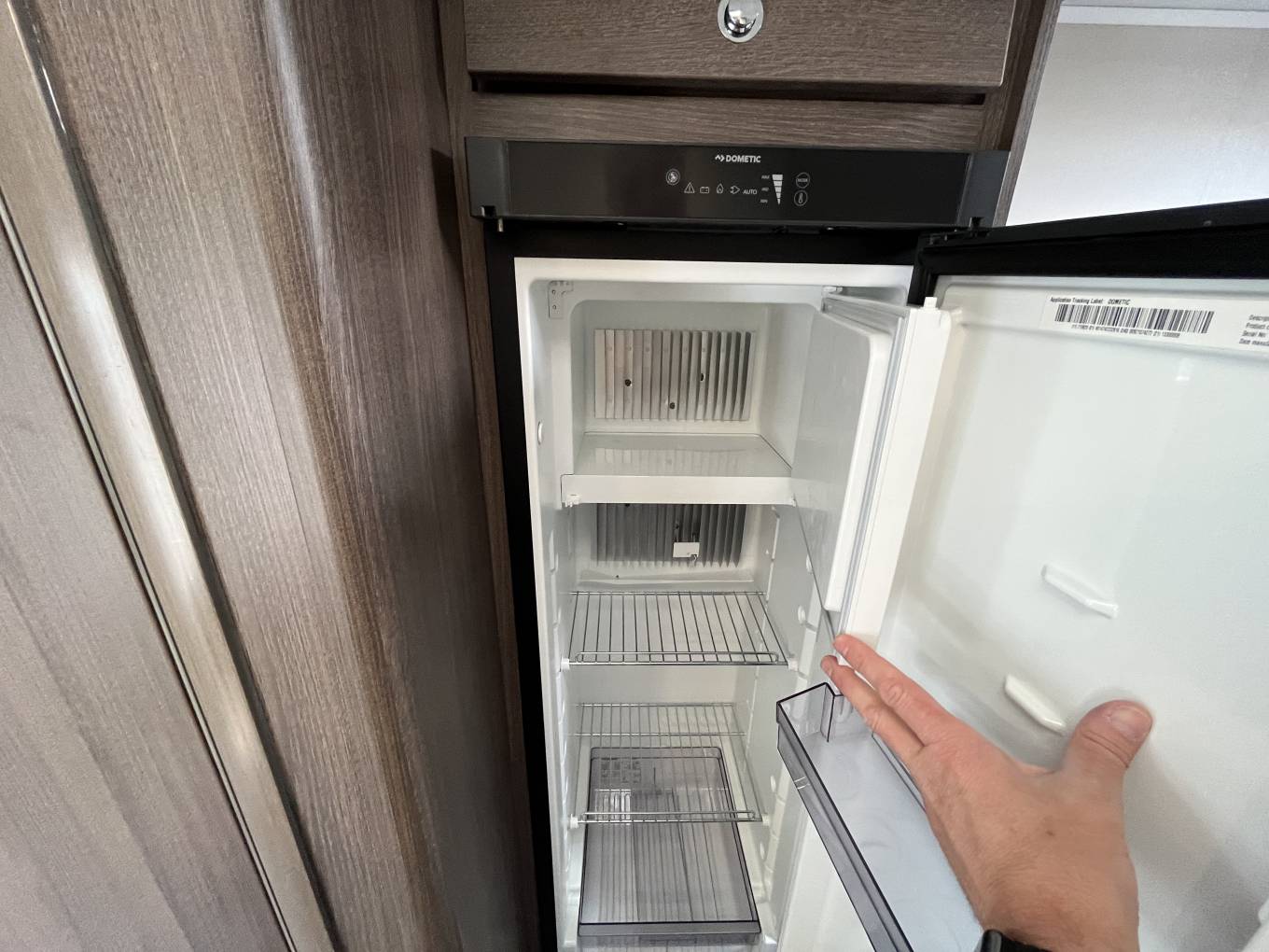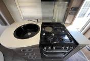 grill, microwave, and a large fridge/freezer, making meal preparation easy