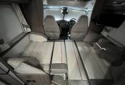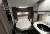 closed off from the rest of the motorhome for privacy. Adjacent to the bed is a