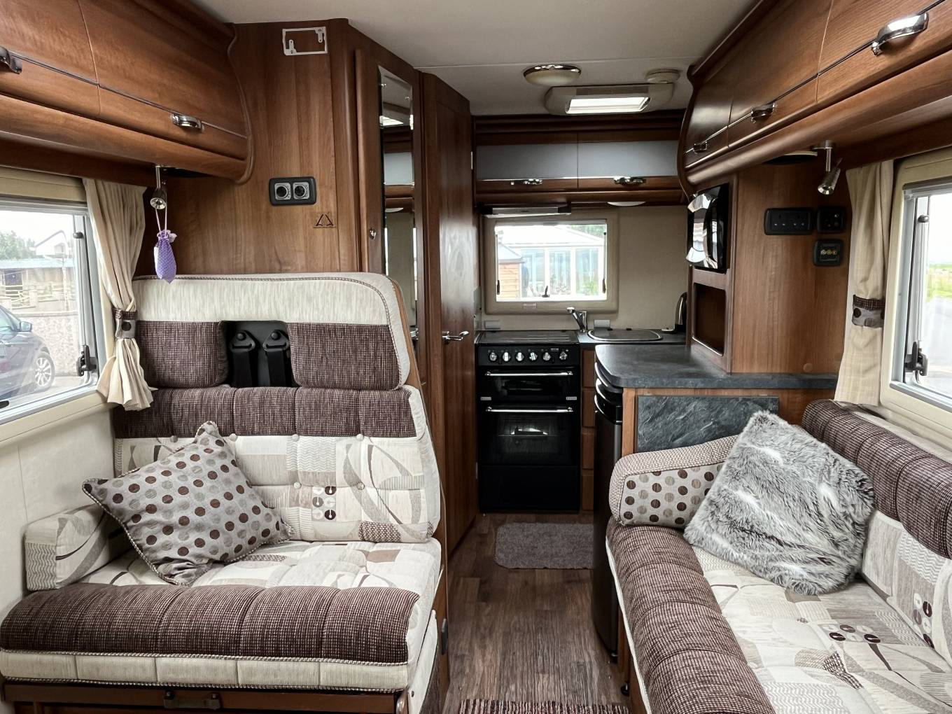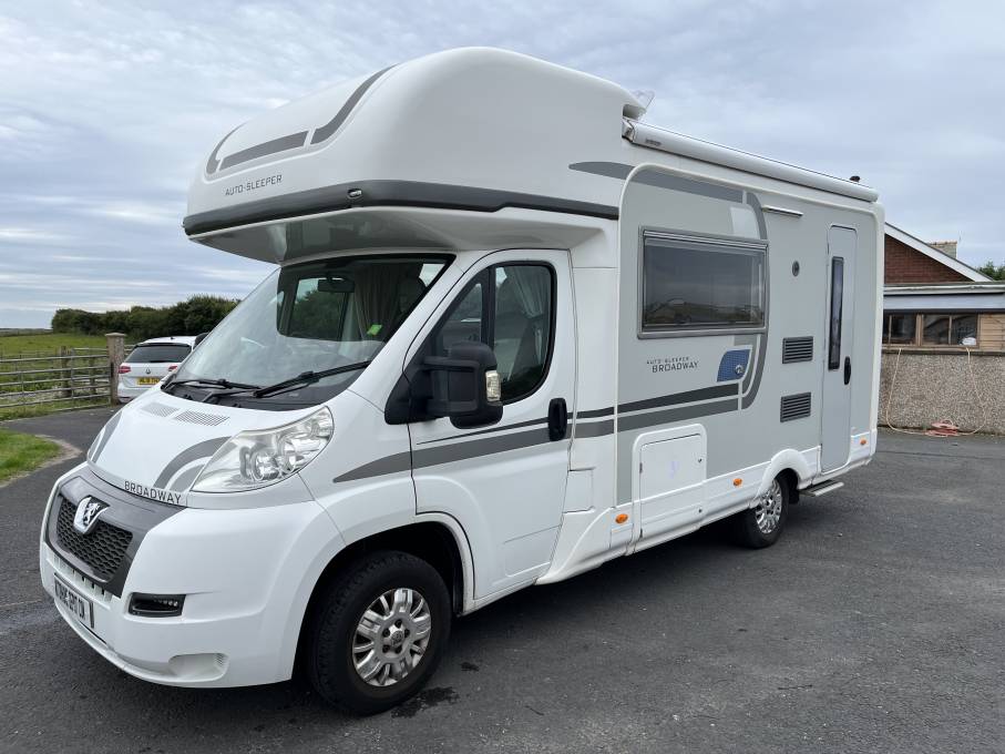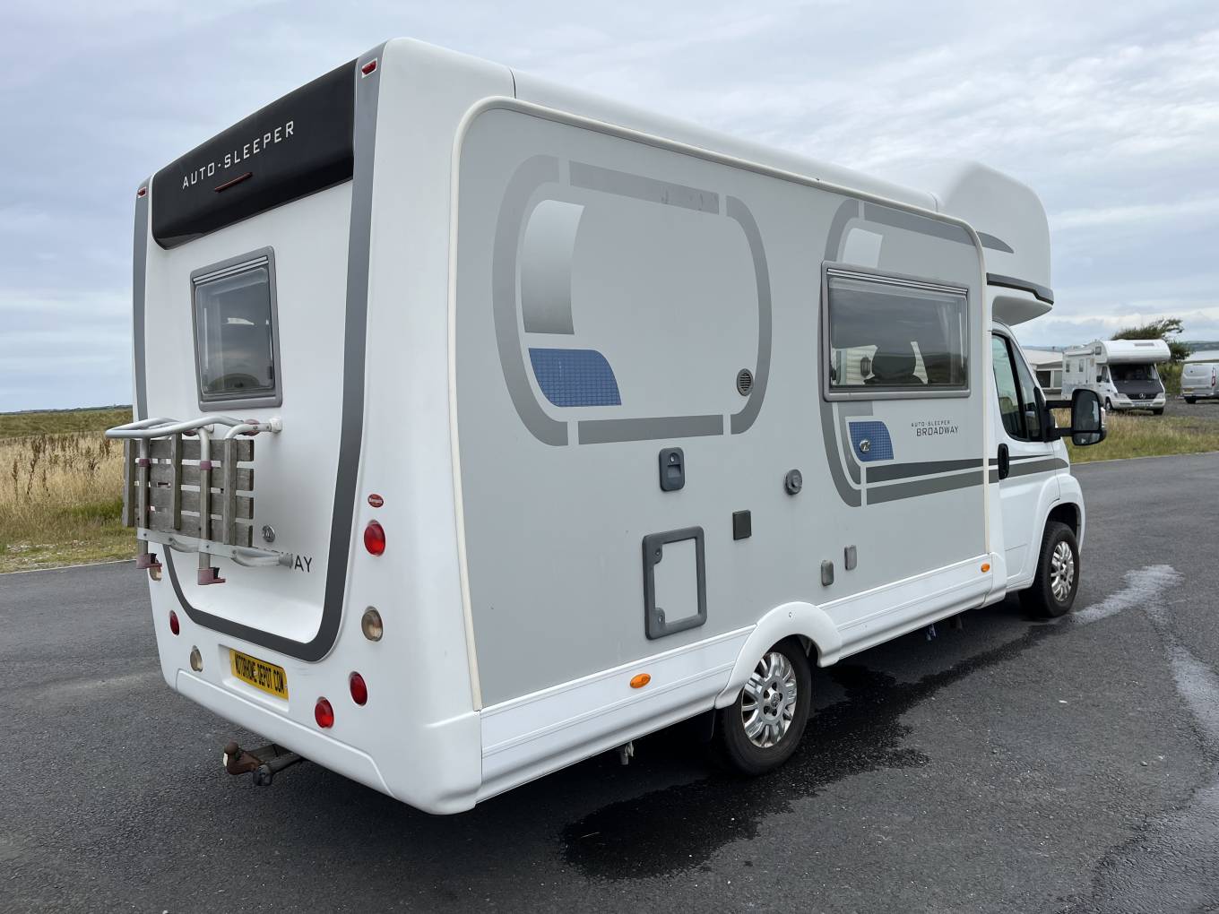 Autosleeper Broadway Luxury 4 Berth with 4 Seat Belts and End Kitchen. This motorhome has been well maintained and has a beautiful interior, it has full habitiation and vehicle services, MOT till Jan 2025 and has done 32,913 miles. At the rear is the kitchen area which is well equipped including a microwave and next to the kitchen is the bathroom with separate shower compartment. In the centre there ia a spacious lounge area with a large settee and at the front threre is an over cab bed. It comes with Cab Air Con, Cruise Control, Blown Air Heating, Alloy Wheels, Avtech TV, Canopy Awning, Solar Panel. Bike Rack, Electric Step and Tow Bar. It also comes with Gas Bottlr, Mains Lead and 2 sets of keys. Available for viewing by appointment in Chorley, call for more photos, videos and information.