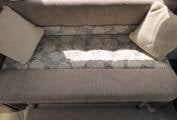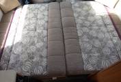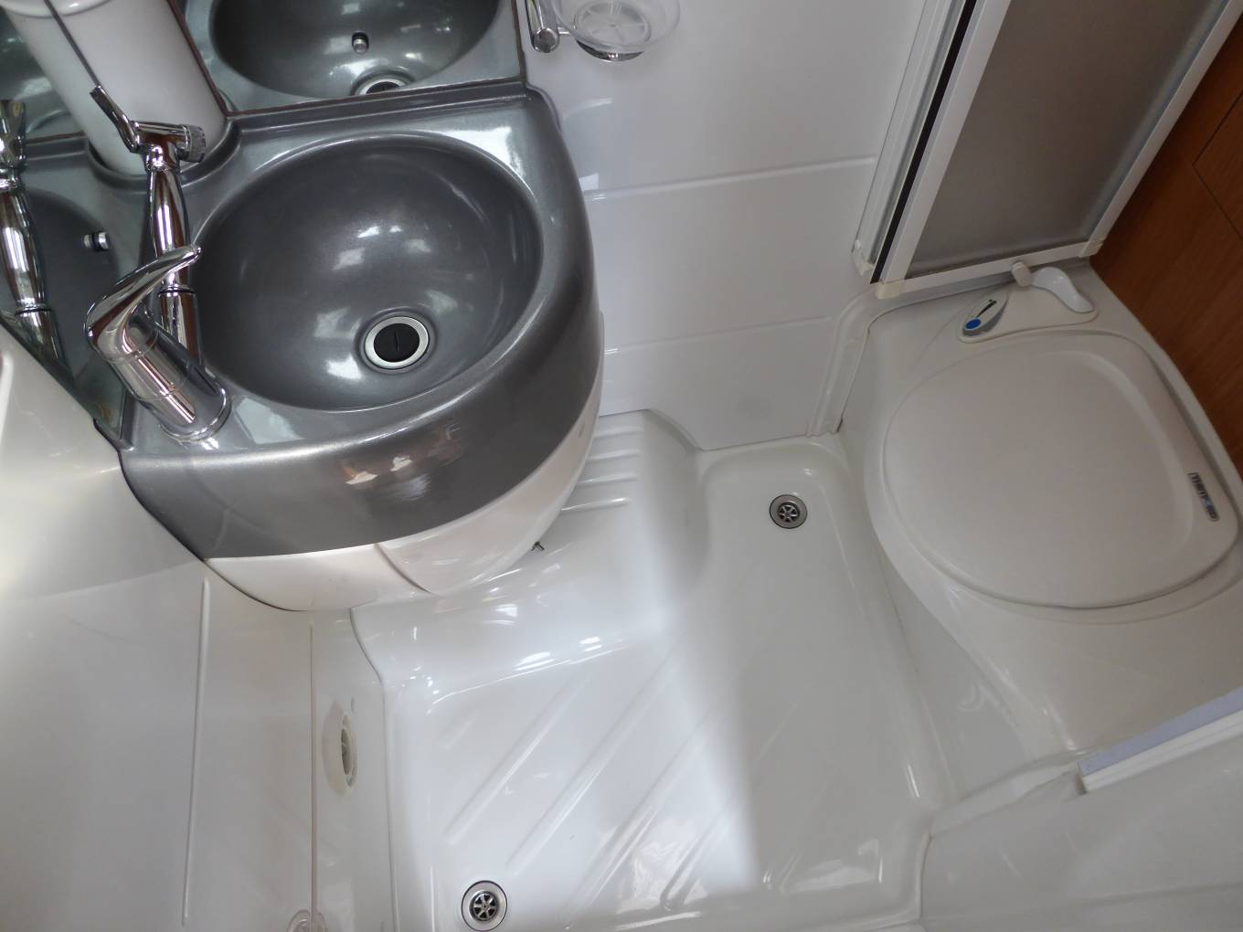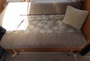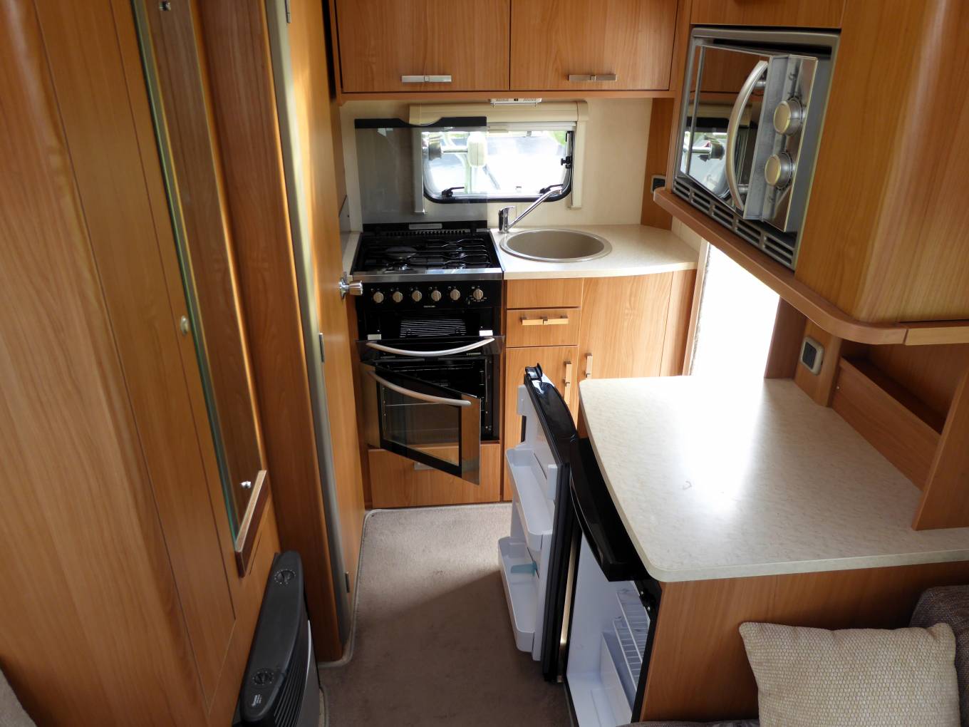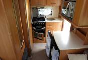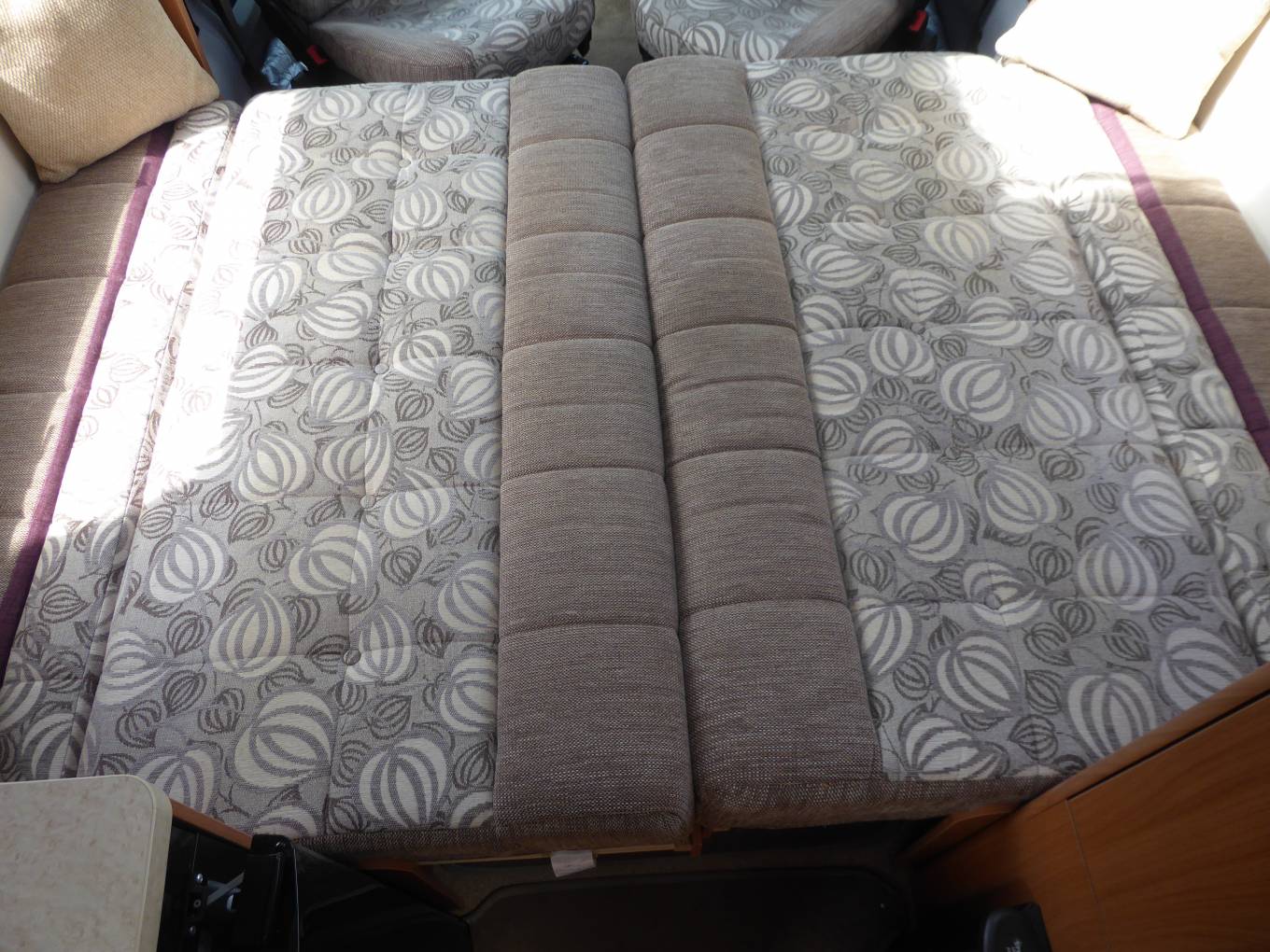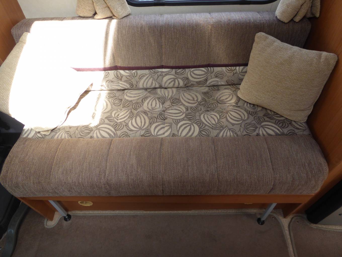 The 2 sofas, provide comfortable places to sit, you can watch TV, that is situated on the worktop above the fridge. The sofas, create a large double bed across the full width; using the swivel seats, 2 single beds can be also be created.