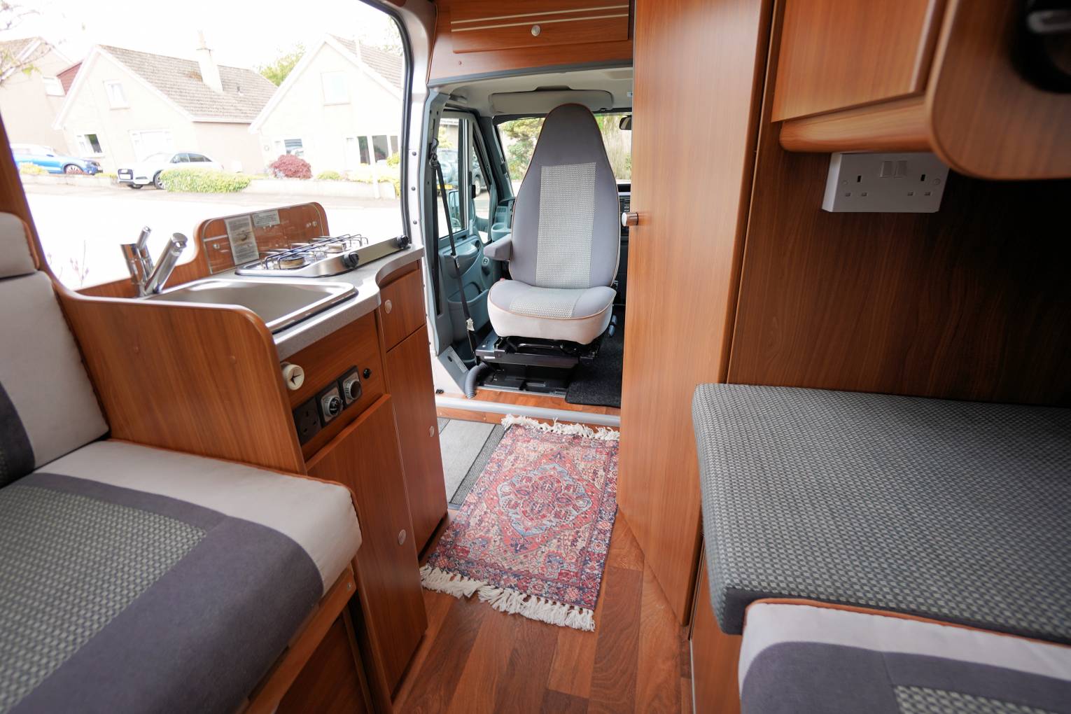 It also has included - cab black-out window blinds, passenger swivel seat, Gas-it LPG cylinder, TV fitted in lounge area and bike-rack at the rear.