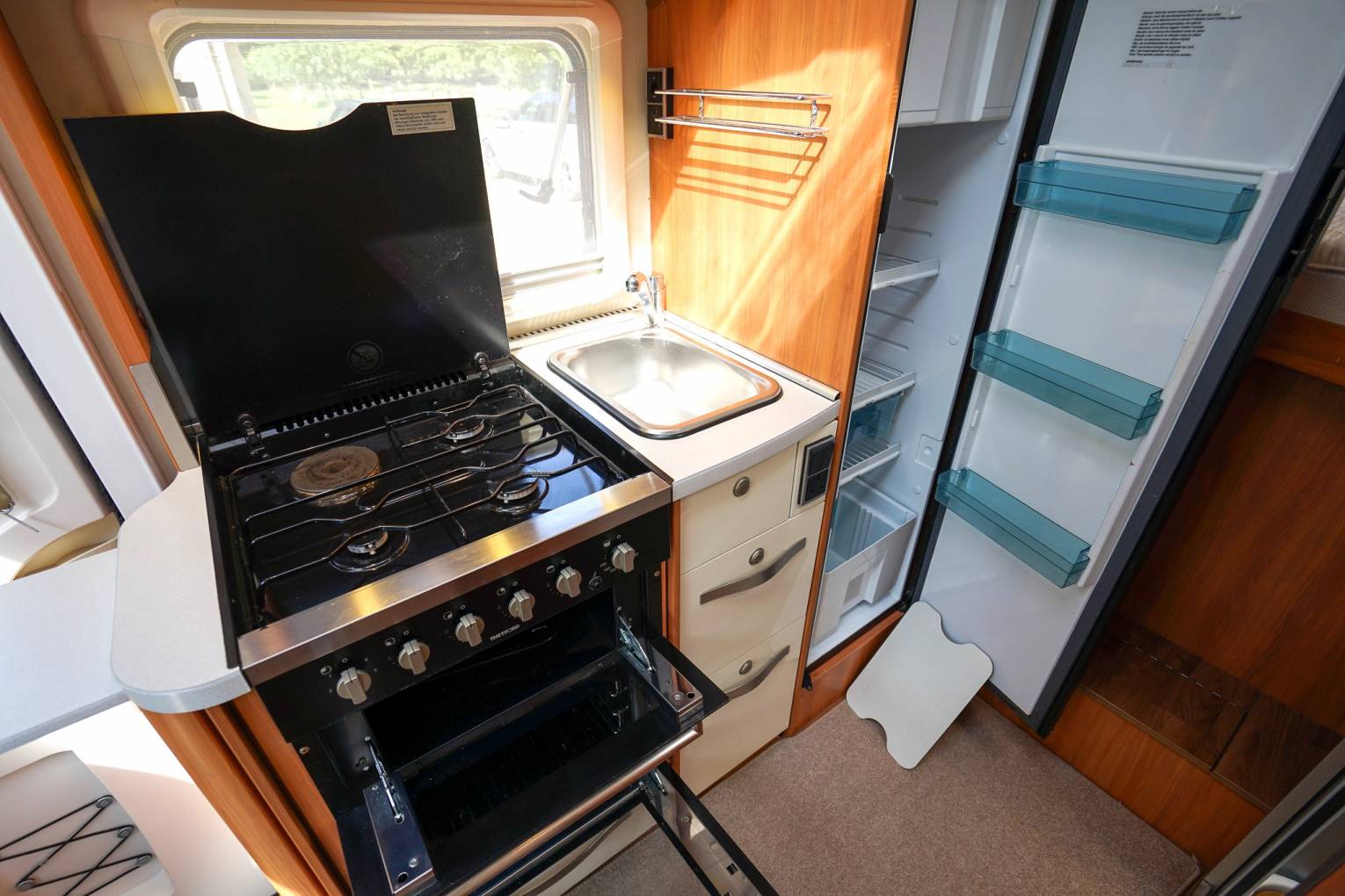 is centrally positioned and is well equipped with a 142 litre Smart Tower Fridge
