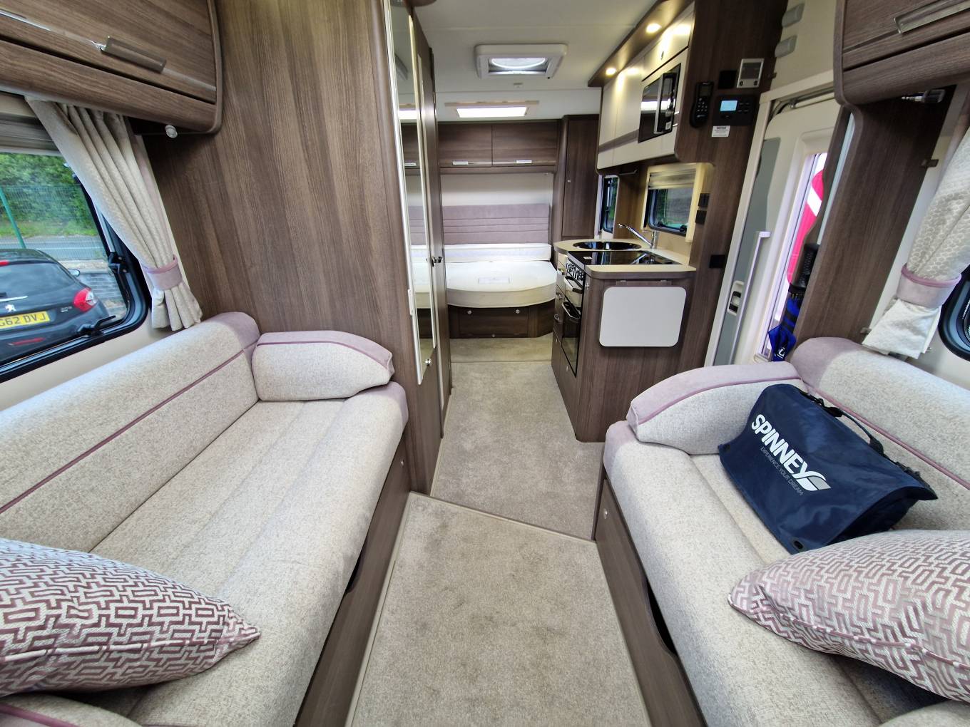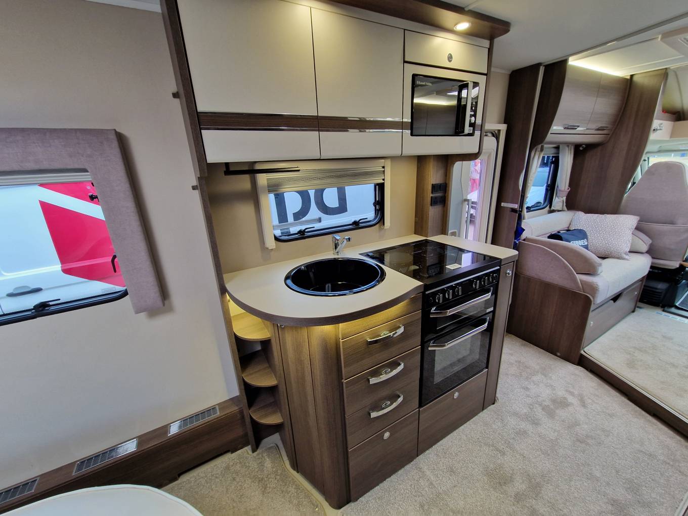 Externally there is a Dometic wind out Sun Canopy,access to the underbed storage and the usual locker door access for gas and toilet cassette. Water and Electric hook-up points, external TV and electric point is fitted and an external gas BBQ point for al-fresco cooking.