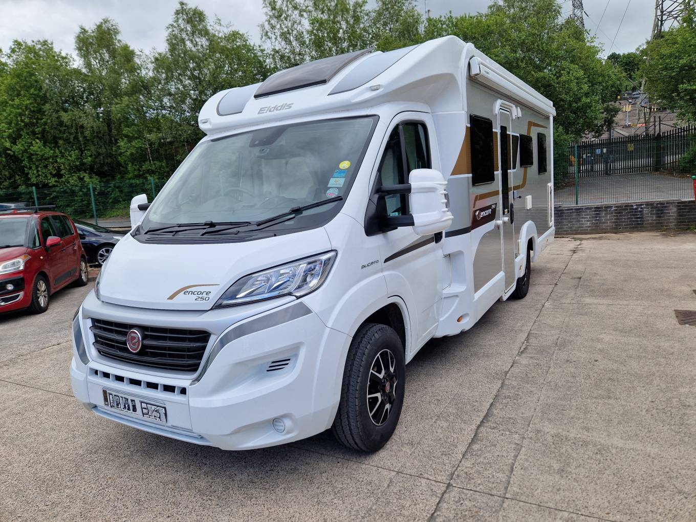 Motorhome Depot are pleased to present this superb 2019(69)Elddis Encore 250 4-berth,4-belt family motorhome. Based on the Fiat Ducato with the ALKO chassis, it is powered by the reliable Fiat 2.3 140BHP Turbo Diesel engine and 6-speed manual gearbox. Having only completed 12400 miles, it has had 2 owners and will come with a fresh MOT,service history to 4.5.2024 and a current habcheck completed in 11.23/The owner has just put a 12 month warranty on it and the next owner will receive the balance of that warranty . It has a GVW of 3500kg so it can be driven on a standard UK licence and the length is 7.41m.Overall this motorhome is in very good condition internally and externally and is a credit to its owner.
