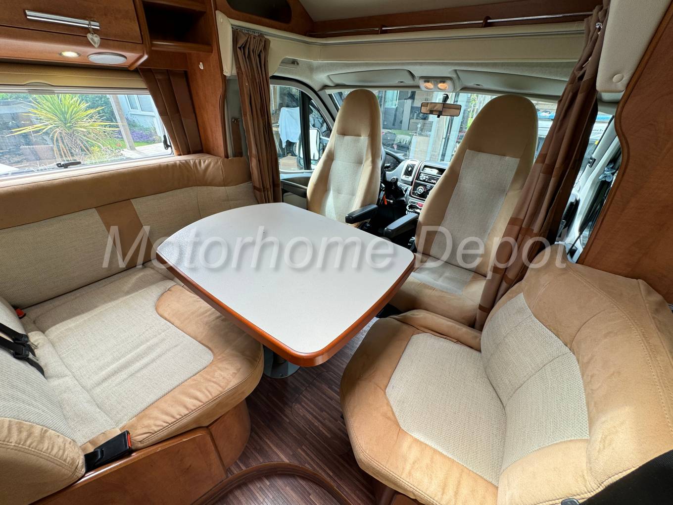 A fine example from one of Germany’s greatest Motorhome builders the Carthago C–Tourer T142 QB this motorhome wreaks of quality where others fail. Based on the ever popular Fiat Ducato chassis with the MultiJet 2.3 litre Euro 5 Diesel engine in its 130bhp form and the manual 6 speed gearbox. The cab benefits from: air conditioning; cruise control; electric windows front; electric adjustable heated mirrors; Pioneer single din CD head unit with DVD playback for TV; reverse camera screen; Remis blinds to front & side windows.