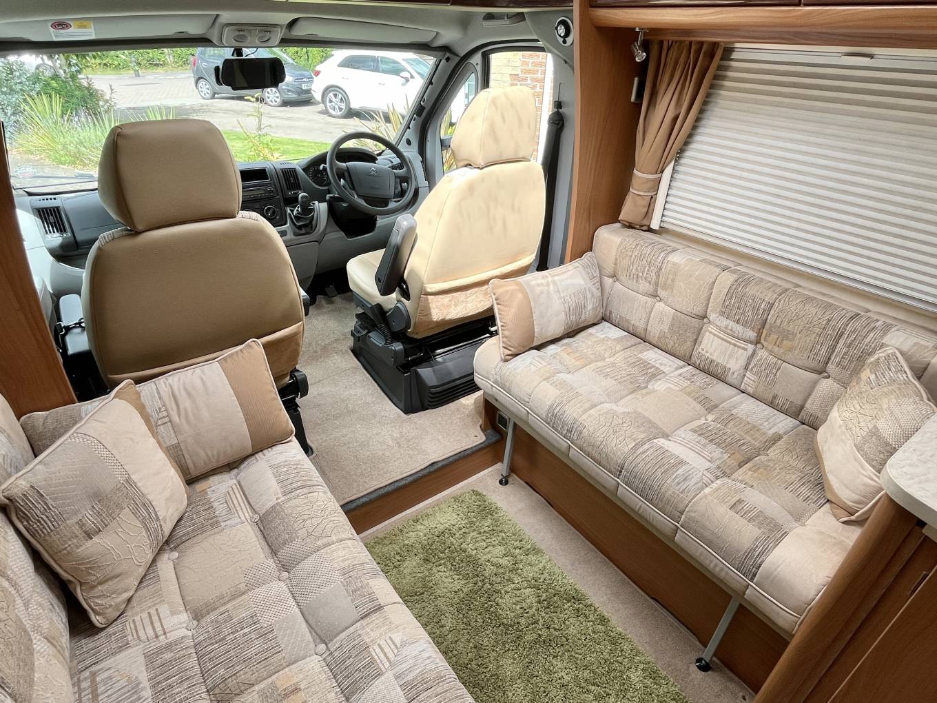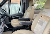 The cabin area comprises of two swiveling captains chairs, cab air conditioning and cruise control, behind the seats are the two lounge benches that create a lovely socialising area that can also be converted to make an additional sleeping area when required. The vans heating is supplied by a Truma blown air heating system.