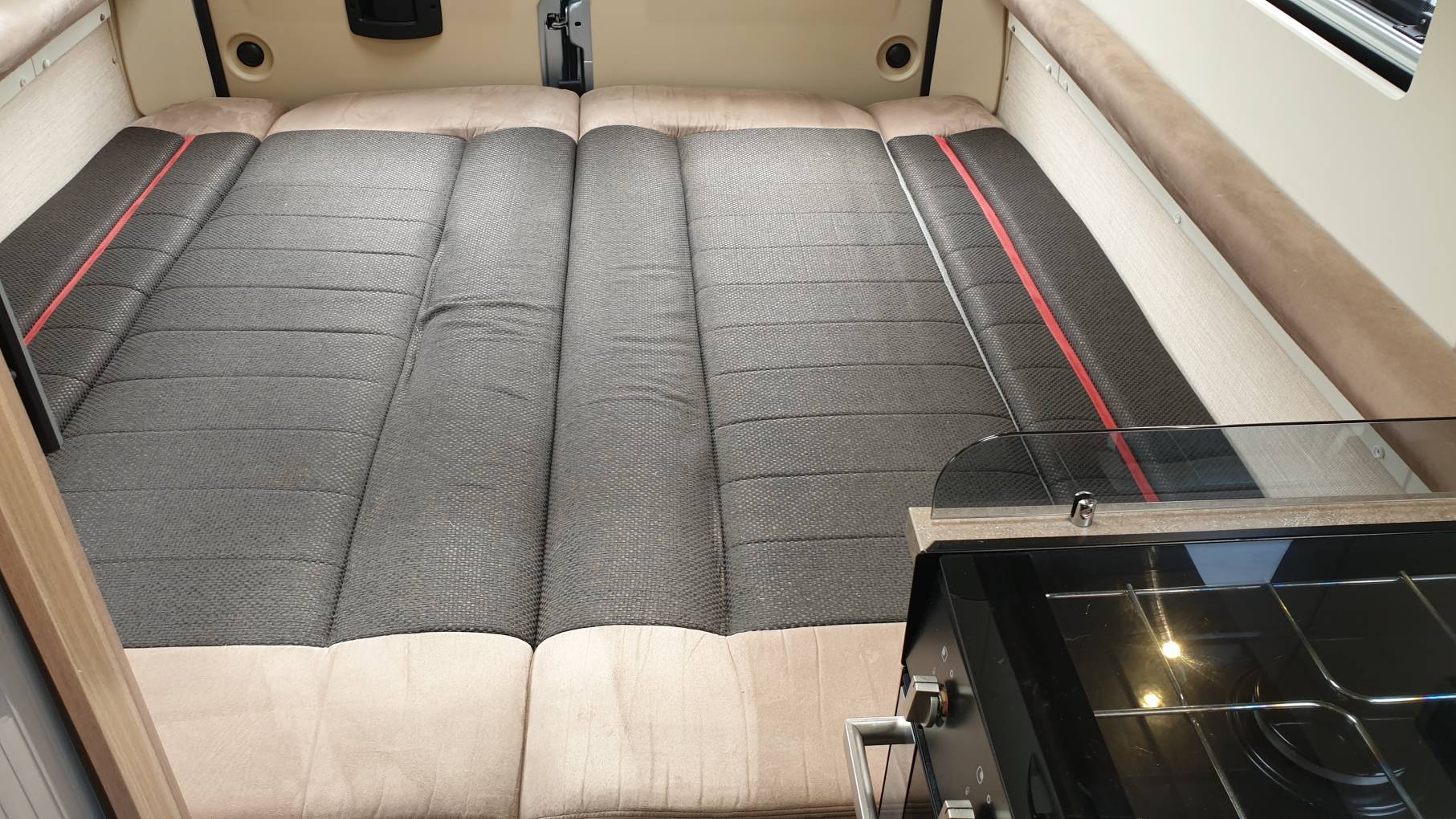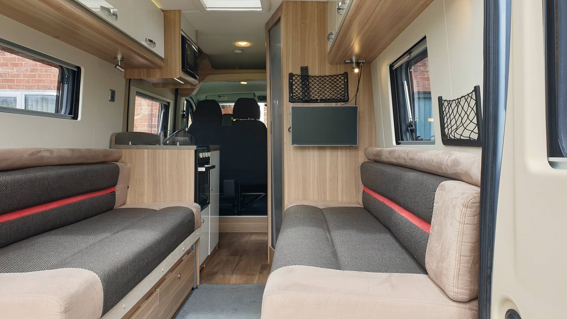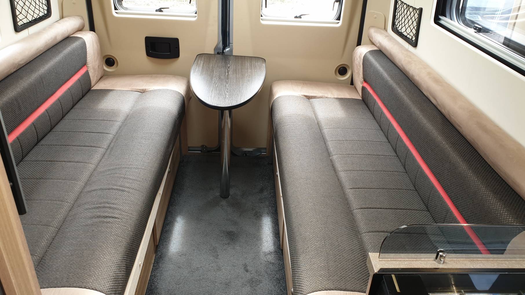 rear lounge/bedroom has two large bench seats which can be used as two single