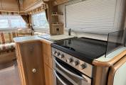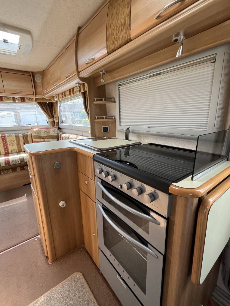 Opposite this area is a well equipped kitchen comprising of 4 burner hob, (3 gas and 1 electric hotplate), separate grill and separate oven, sink and drainer with hot & cold running water, there is plenty of storage below and above the kitchen area along with two pop up worktop areas for further kitchen worktop space.