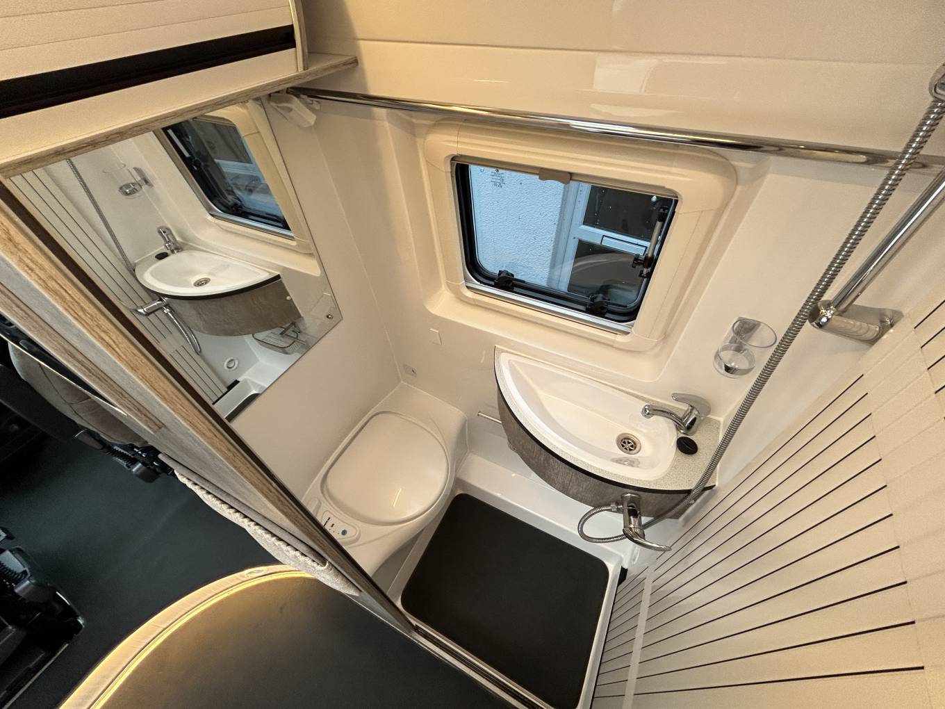 van. The washroom is made from a custom designed hard wearing fibreglass and