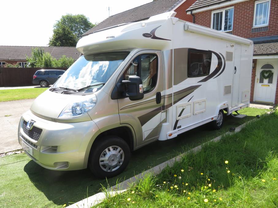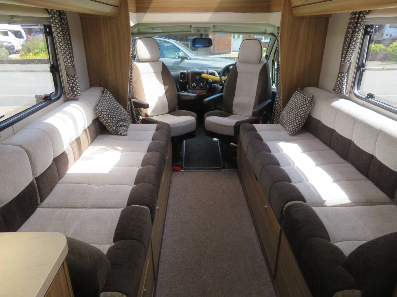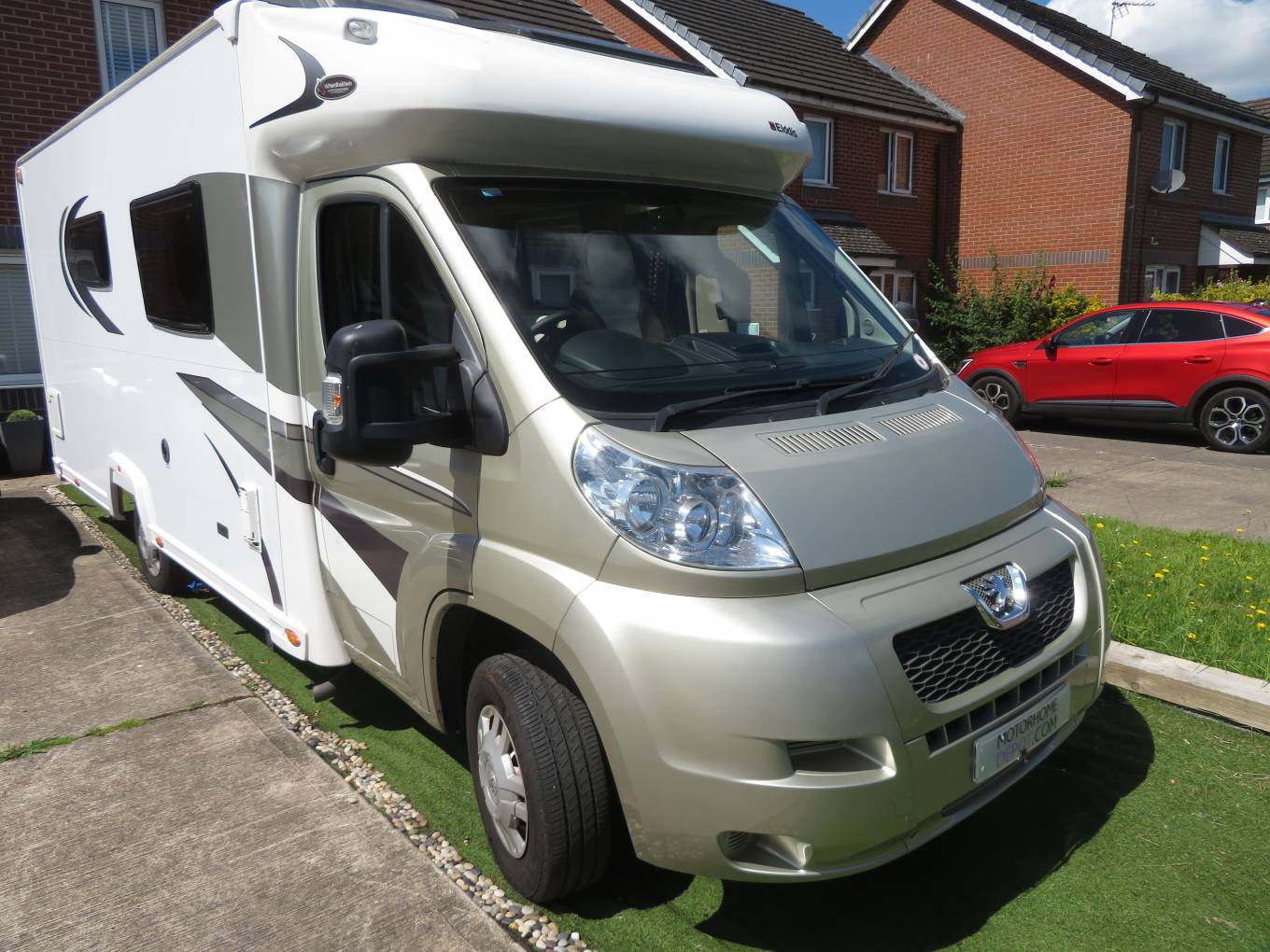 This Spacious 2 berth motorhome offering generous accommodation, vast storage and an end washroom. Fitted with the sophisticated Thatcham category 1 alarm, reversing camera and solar panel, this well cared for example is 7 metres long and has two seatbelts in total. Plated at 3500KG, it can be driven on a standard car licence. The forward lounge is a light and airy space, and with the cab seats swivelled the seating is vast, Each of the side settees is capable of being used as a single bed and put together they quickly make a large double. Access to the underbed storage is easy as the frames lift up on gas struts. Midships you will find a well equipped kitchen with gas hob, oven and grill, lockers and drawers plus a pull out worksurface, opposite a tall fridge freezer and side dresser unit. To the rear is the roomy washroom, having large wardrobe, solid lined shower cubicle, toilet and vanity sink. The Peugeot cab offers an excellent driving experience with 130bhp and 6 speed gearbox, light controls, cab air conditioning, cruise control, steering wheel buttons, radio. Outside, you will find access to the underbed store, great for cables, hoses and chocks, battery and gas compartments. One gas bottle is included in the sale.