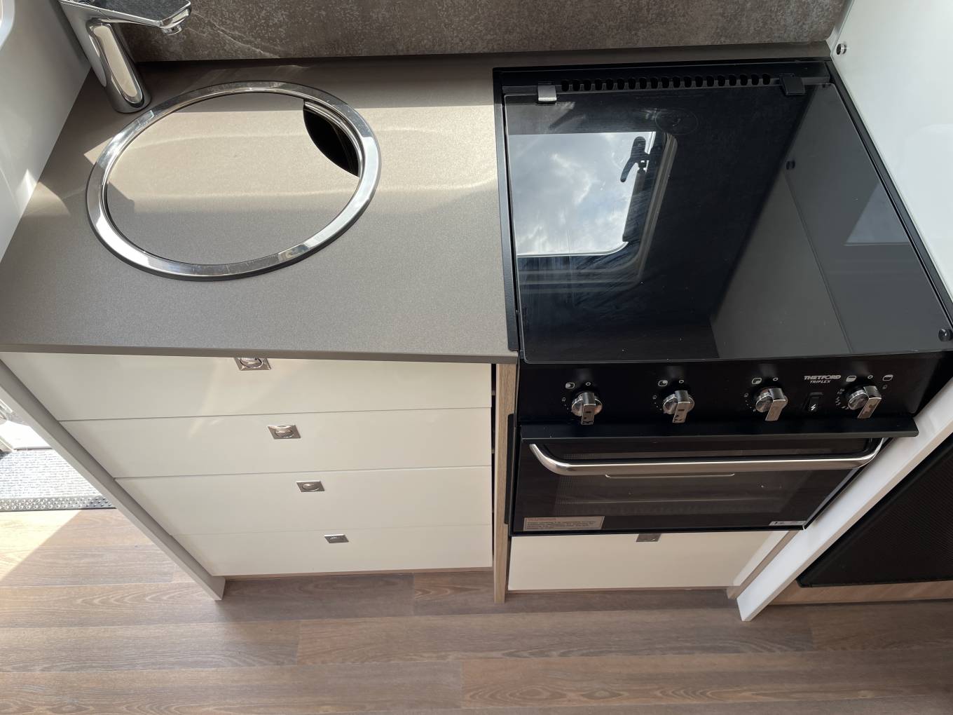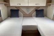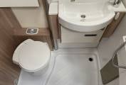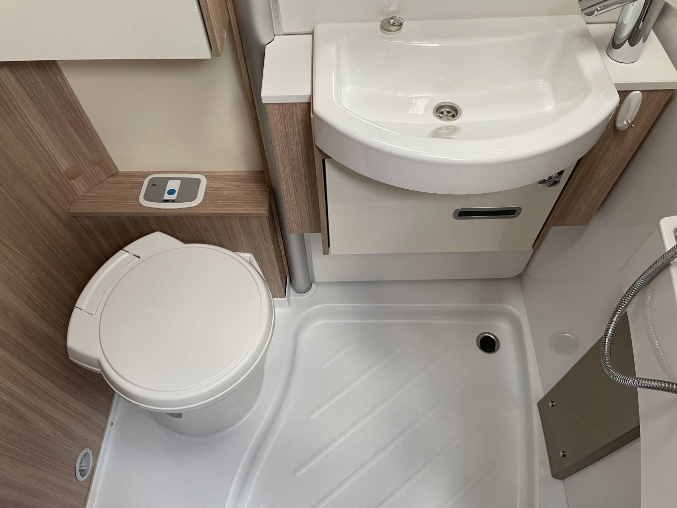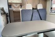 This is a superb couples van with one of the big features the luxury fixed twin single beds at the rear, a central washroom and well equipped central kitchen area. To the front is a lovely bright and airy seating area for four around a large adjustable pedestal table.