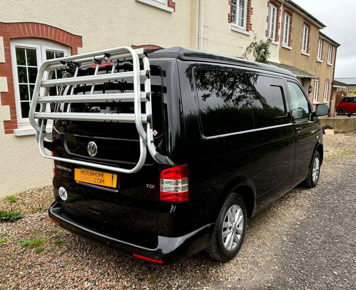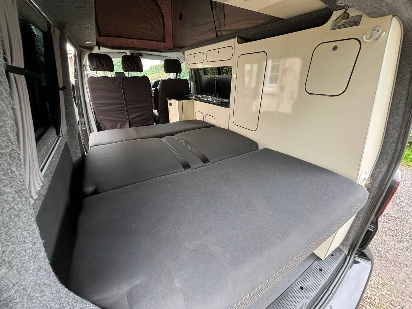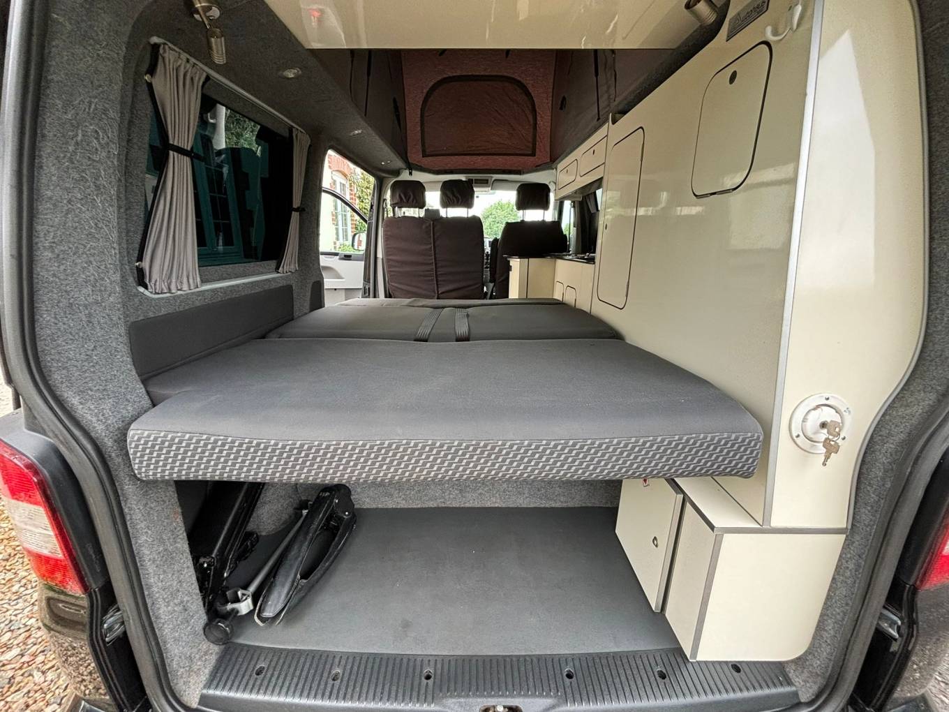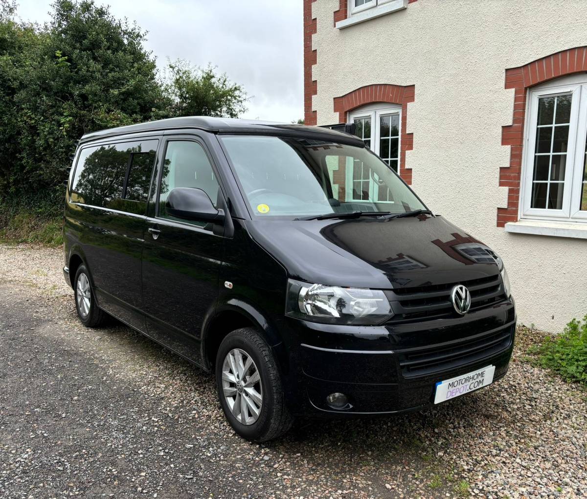 Motorhome Depot Cornwall present this 2014 VW Transporter T5 professional van conversion that is a 4 berth 5 belt camper in a standout white interior and comes with Cab Air Con, Solar Panel and Diesel Heating and much more. The conversion was professionally done to a very high standard by Autohaus who pride themselves on creating beautiful, designed conversions, that are of the highest quality and have a great reputation to back this up.