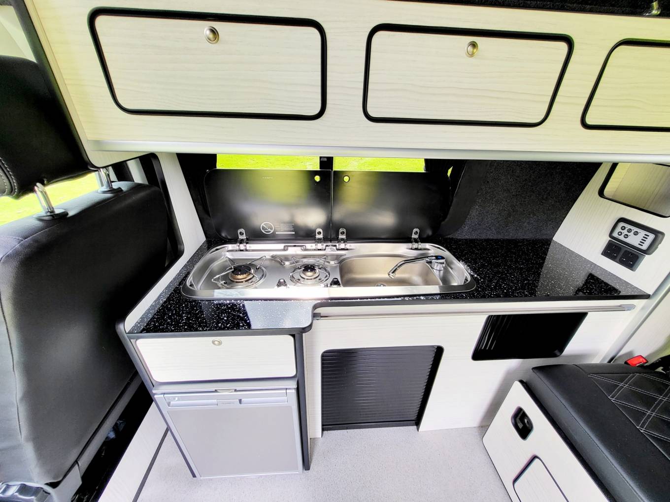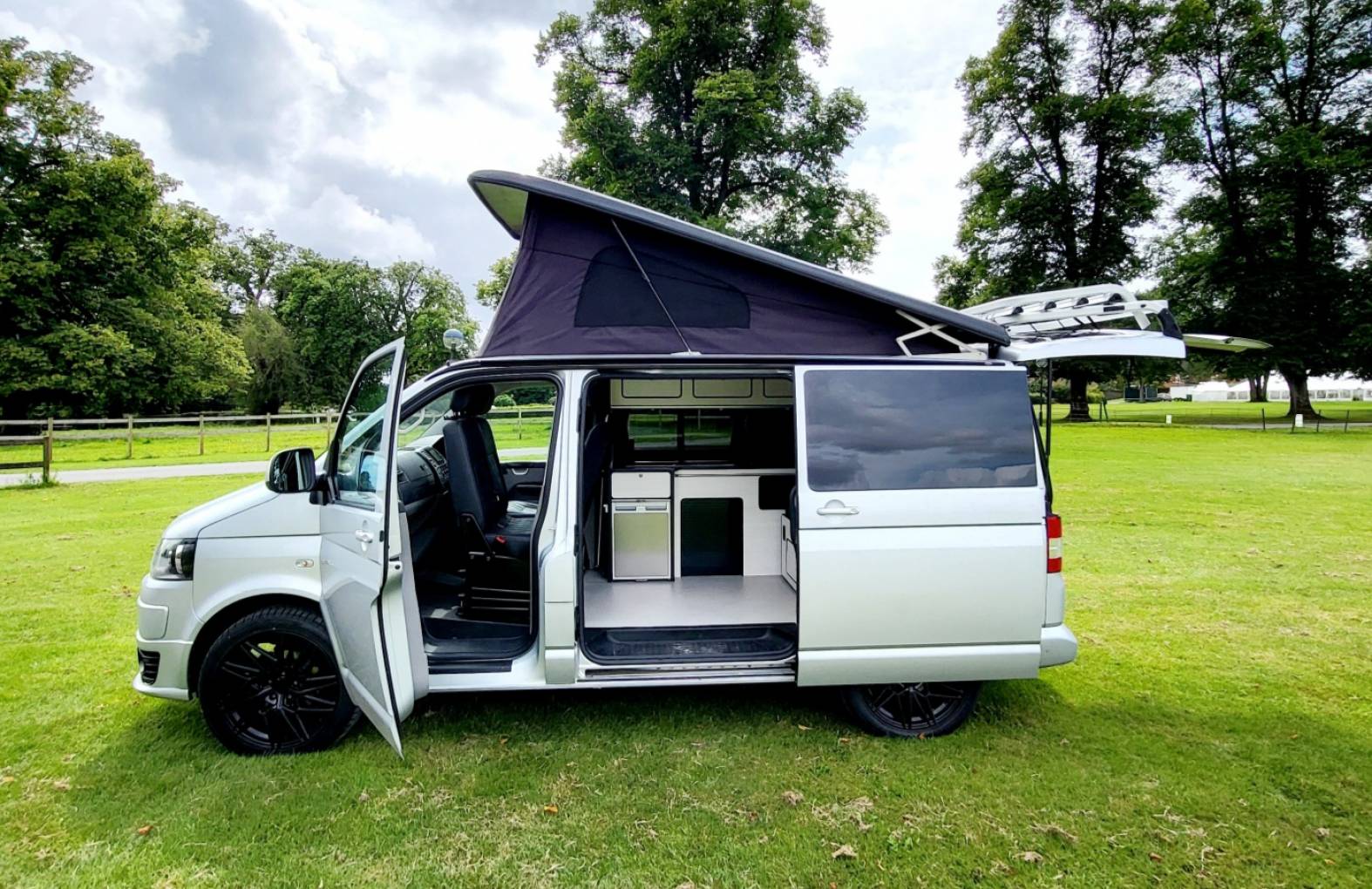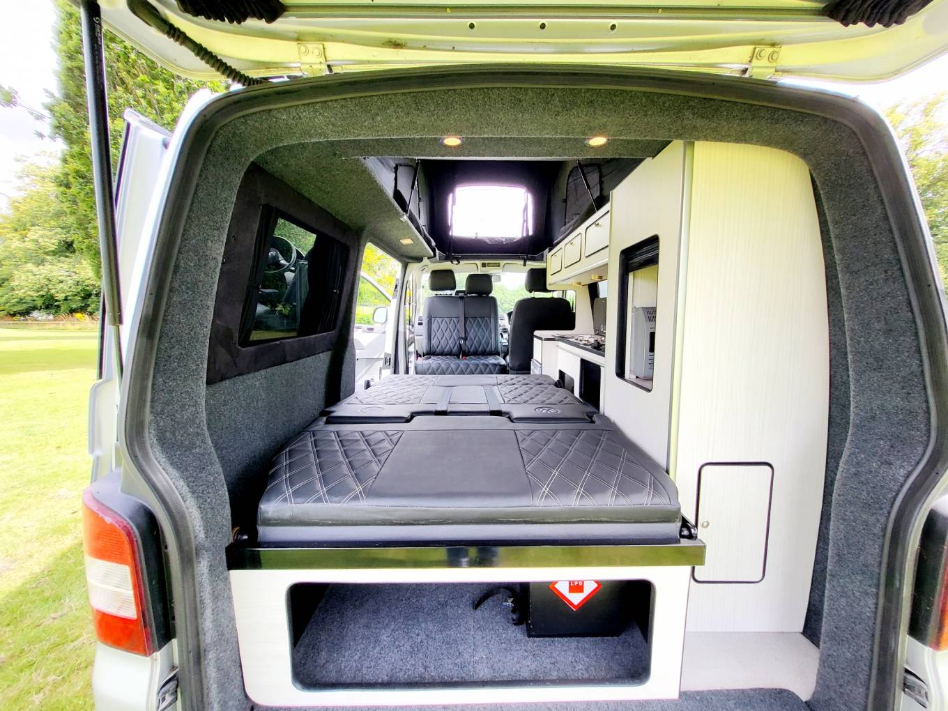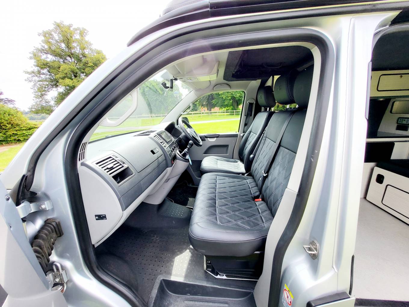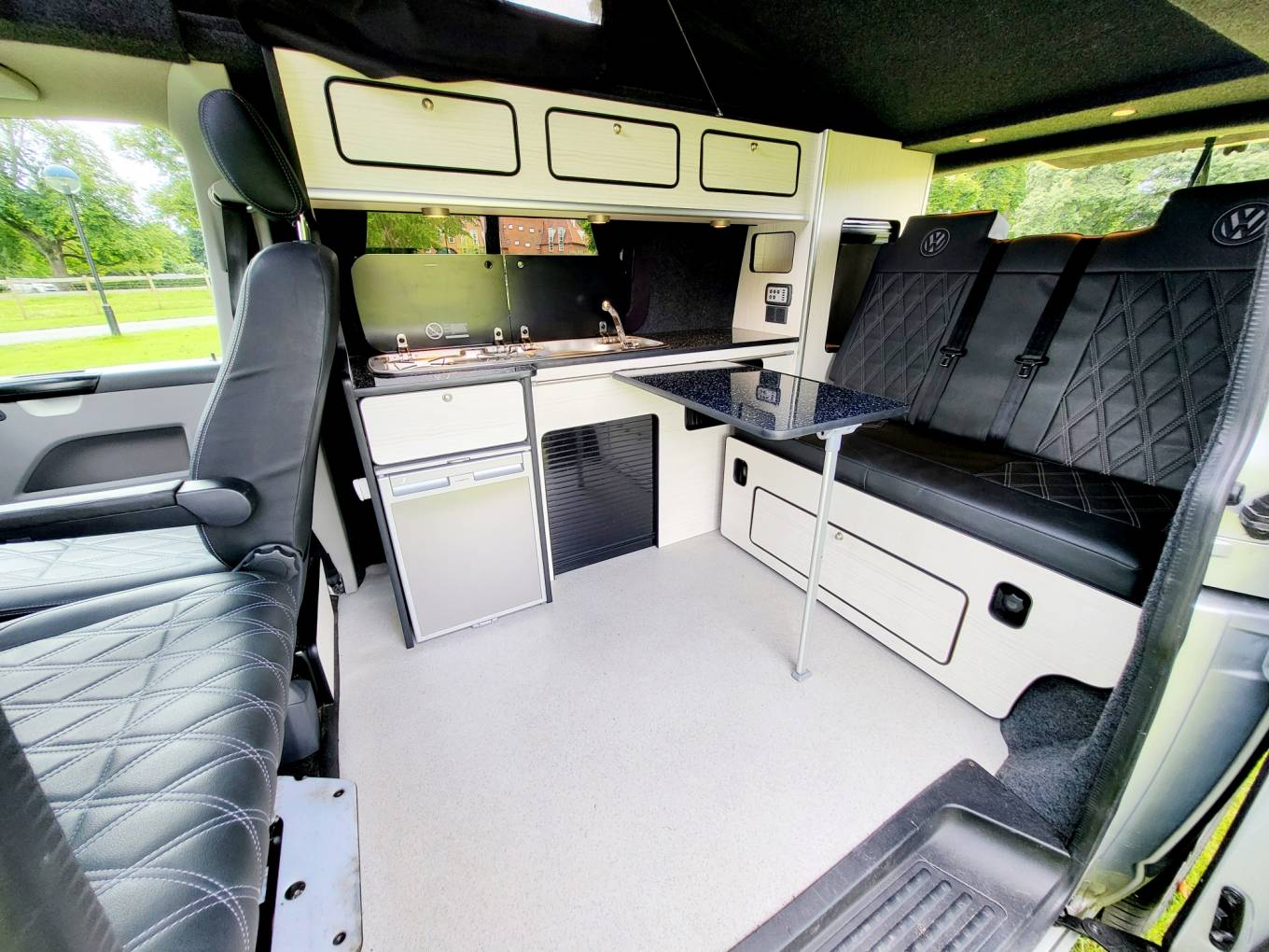 MANUAL 5 SPEED, DIESEL / BLUE MOTION, AIR CONDITIONING, CRUISE CONTROL, REAR PARKING SENSORS & REVERSING CAMERA, 4 BERTH / 5 BELTED SEATS, TAILGATE REAR DOOR, BLACK 20" ALLOY WHEELS, SPORTLINE FRONT GRILL, AWNING RAIL, ELECTRIC WINDOWS, TINTED PRIVACY GLASS, 2 X SLIDER SWIVEL FRONT DOUBLE PASSENGER SEAT (WITH STORAGE) BRANDED LEATHER EFFECT UPHOLSTERY, ALARM / CENTRAL LOCKING / STEERING LOCK, DAB RADIO /APPLE CAR PLAY, VW 4 BIKE RACK & UPGRADED TAILGATE STRUTS 1250N, 2 SETS OF KEYS/REMOTES, MOT EXPIRY DATE 10 DECEMBER 2024, 2 PREVIOUS OWNERS, 2 NEW TYRES, NEW CAMBELT & WATER PUMP AT 144K. KITCHENETTE / DINING AREA, DOMETIC MO922D TWIN GAS BURNER & SINK COMBO, DOMETIC CRX FRIDGE (RUNS OFF LEISURE BATTERY) TOUCH ON TOUCH OFF LED LIGHTS, TOP-OF-RANGE LEISURE BATTERY, 240V HOOK UP WITH 25 METER CABLE, SARGENT EC155 POWER CONTROL SYSTEM, ROCK & ROLL DOUBLE BED (SLEEPS 2)/ REVERTS TO 2 BELTED SEATS, POP-TOP WITH BEDBOARDS, FULLY LINED AND INSULATED WITH VELTRIM, REGULTORY GAS SAFE BOX AND BOTTLE, BLACKOUT CURTAINS, UNDER SINK FRESH AND WASTE WATER TANKS WITH 12V PUMP. IMMACULATE CONDITION.