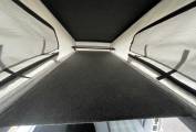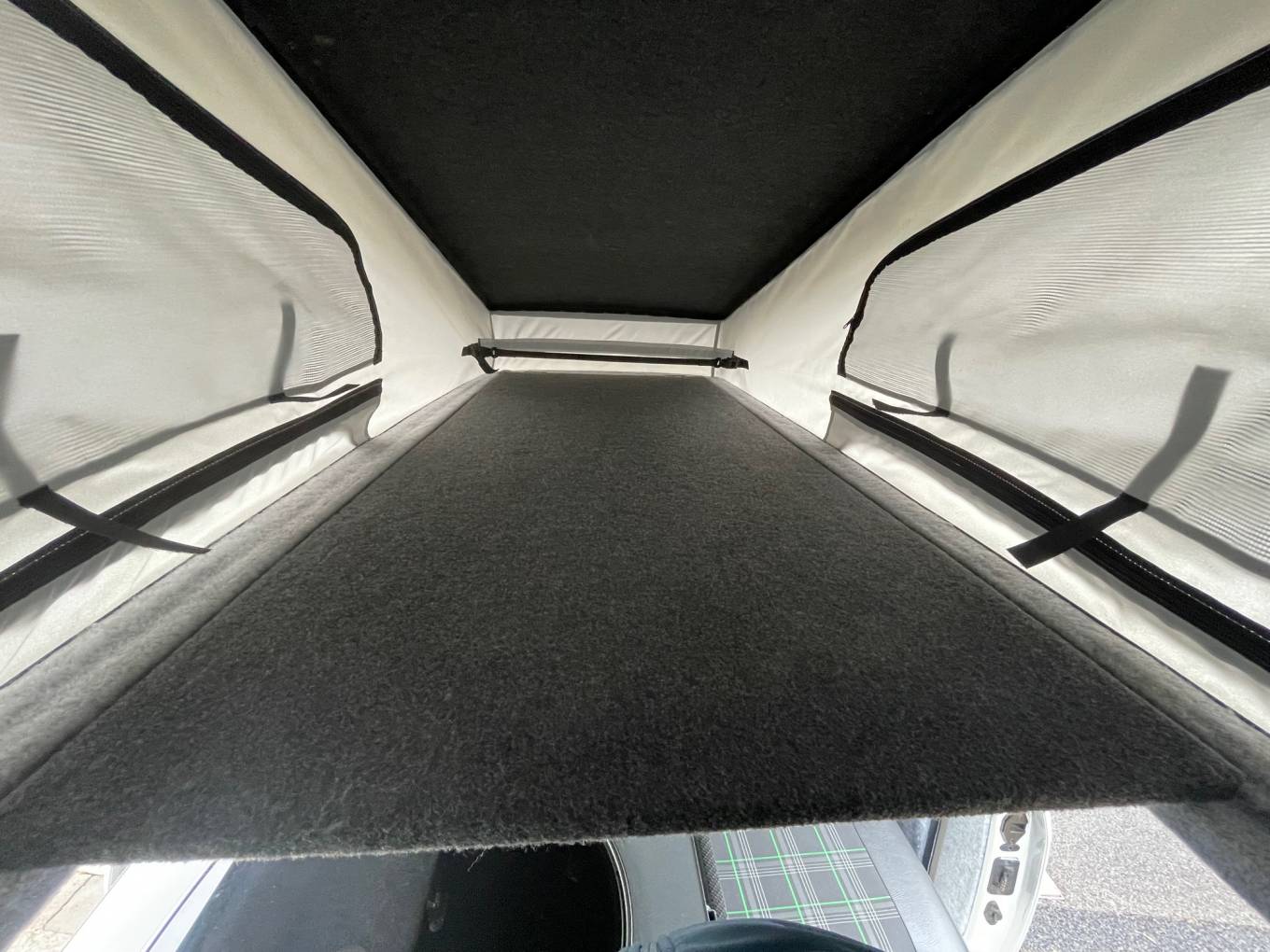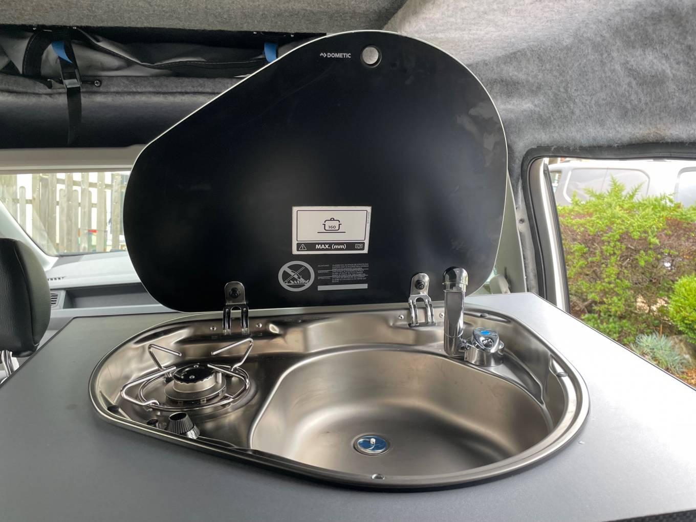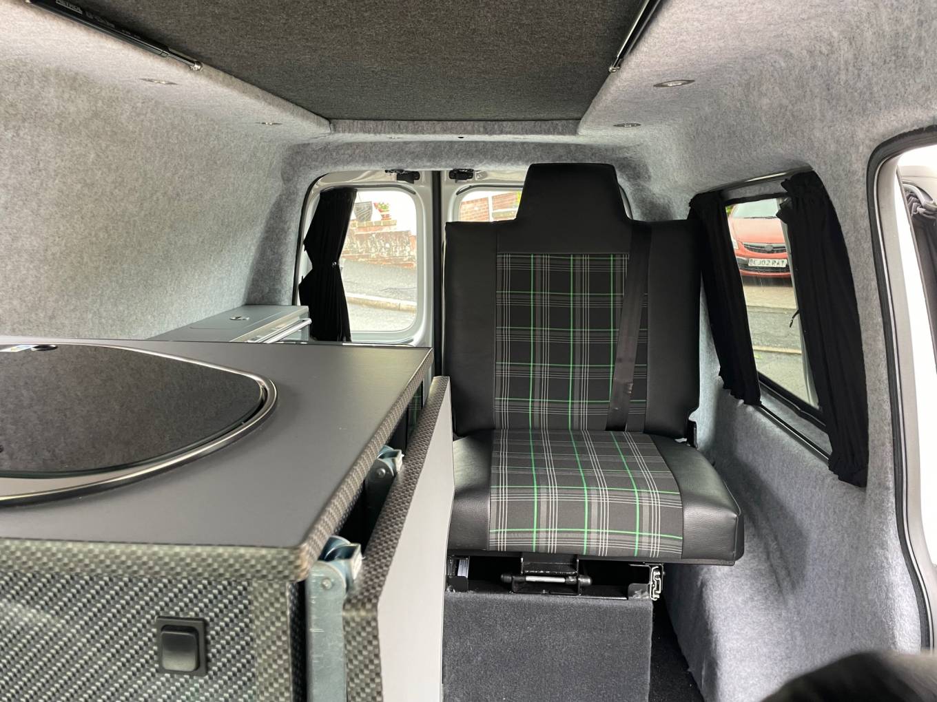 Excellent layout with sleeping places for 1 person in a single adjustable fold down, Rock n Roll bed which also functions as a third seat when travelling and provides, when open, a long seating area for relaxing and using the table. There is also sleeping for two more in the push up roof space. There are 3 travelling seat belts. The popular lounge area can be used for dining, sleeping and relaxing.