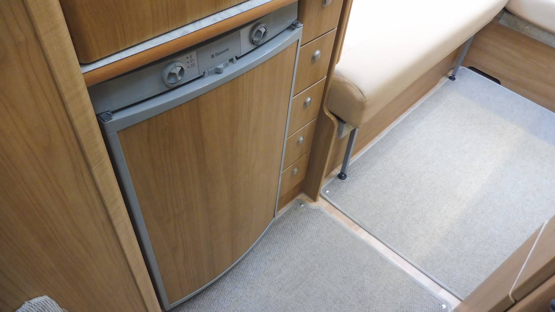 Behind the cab passenger seat is a unit housing a Truma Combi boiler, which can be accessed from three sides. Above is a classic cocktail cabinet. The Stardream is very much a ‘British’ product, built to cater to our particular tastes.