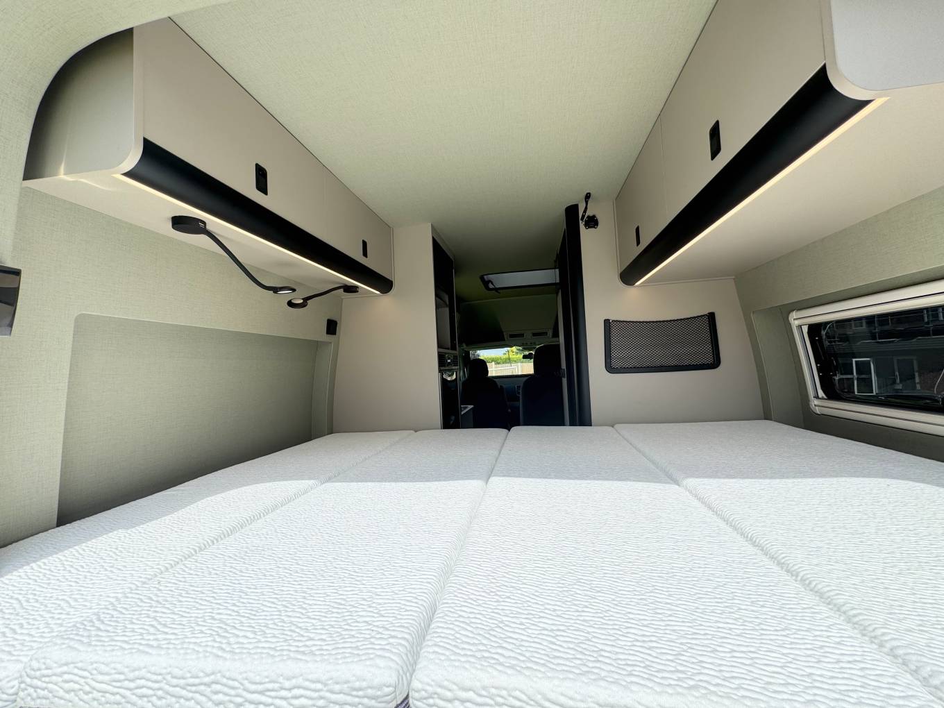Take control of the open road from the comfort of the cab area, where you'll find an impressive array of features. Cruise control effortlessly maintains your speed, while the reverse camera and sensors provides a clear view for stress-free manoeuvring. The built-in blinds offer privacy at your fingertips, and the electric wing mirrors ensure optimal visibility. With air conditioning keeping you cool in the summer and heated seats and steering warm in the winter, and two captain seats offering supreme comfort, you'll feel like the king or queen of the road.