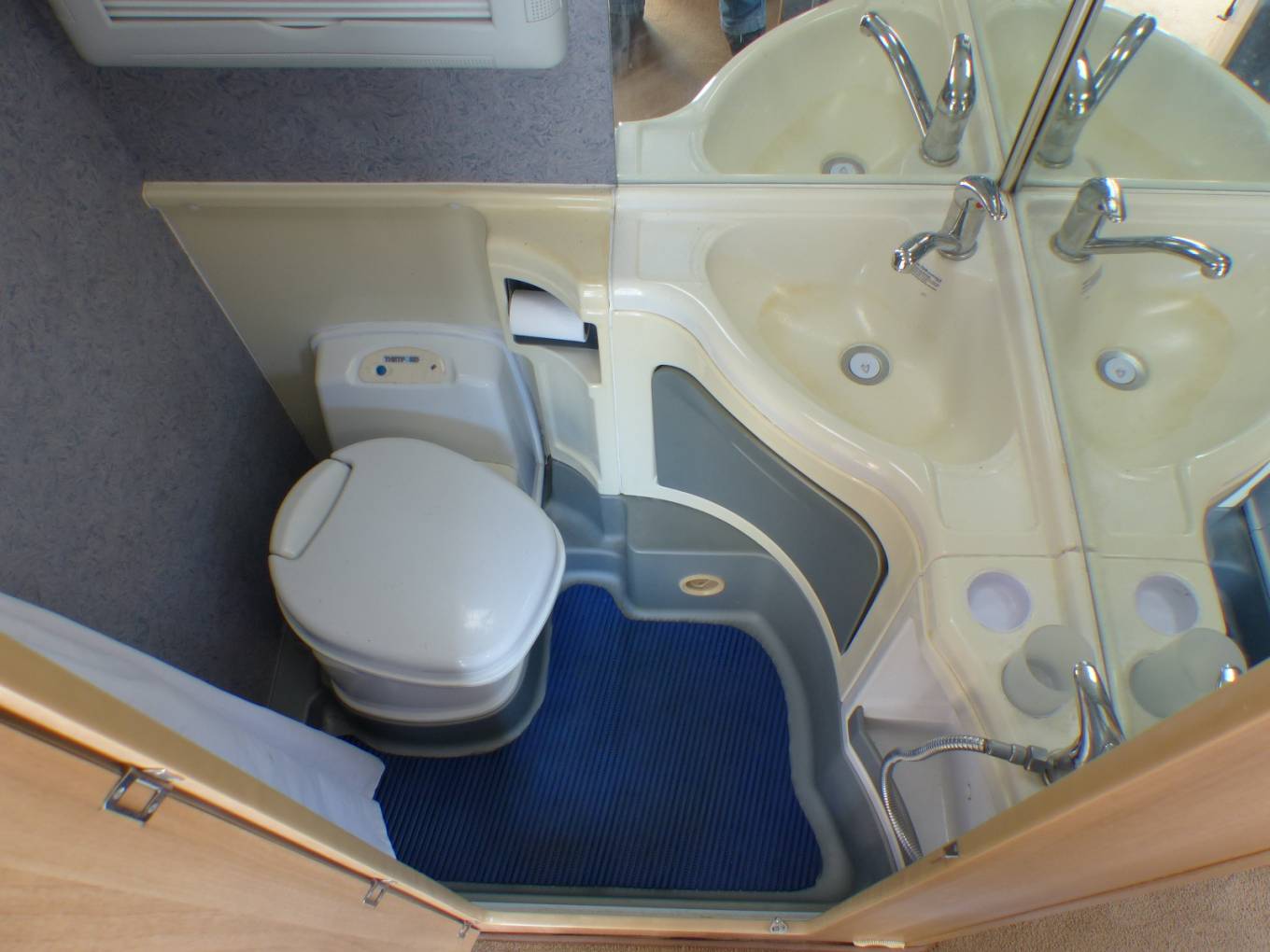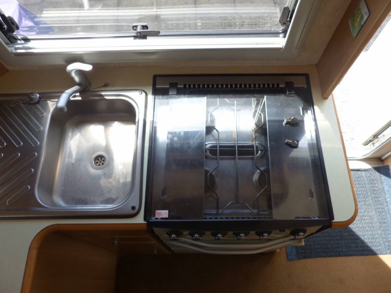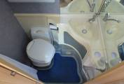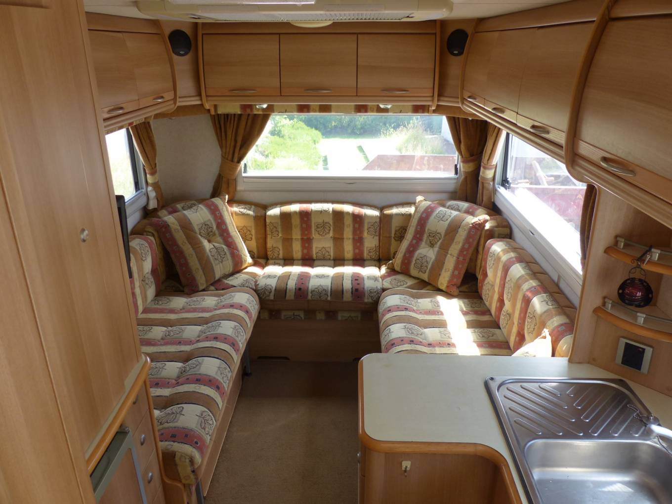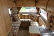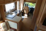 The U shaped rear lounge, with three panoramic windows and large skylight above, is one of the main features of this motorhome, offering a fantastic social and dining space which easily converts to a good sized double bed, or two six foot singles and has a free standing table for meal times. All upholstery is good condition throughout and there is a the well appointed washroom.
