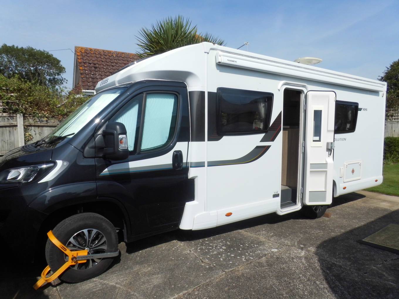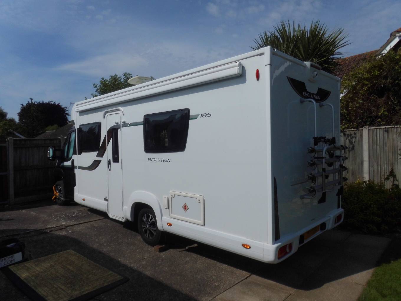4 BERTH MOTORHOME WITH FIXED SINGLE BEDS. Elddis Autograph Evolution 185, low mileage 4 berth with twin single rear beds, full traverse rear wash room, a popular layout. This is a well looked after example, complete with 3 tier bike rack, awning, Max view satellite dome, low level entrance step. Euro 6 140 bhp, Peugeot chassis.
