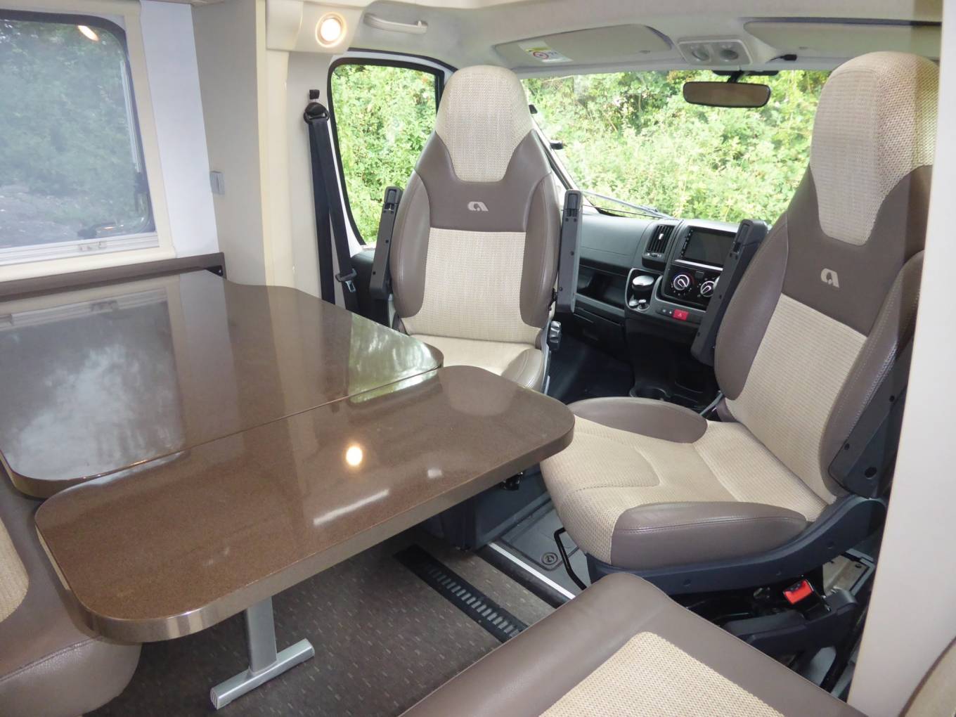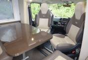 Behind the cab, the light and airy forward habitation leisure/dining area is comprised of a forward facing half-dinette with two additional seat belts) and a side seat (with one rear facing seat belt). This area can be enhanced by the use of the two swivel cab seats. The main seating can be configured to form a transverse berth.