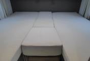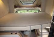 At the rear of the vehicle is a sleeping area with two raised single beds; these can be converted for use as a transverse double berth.