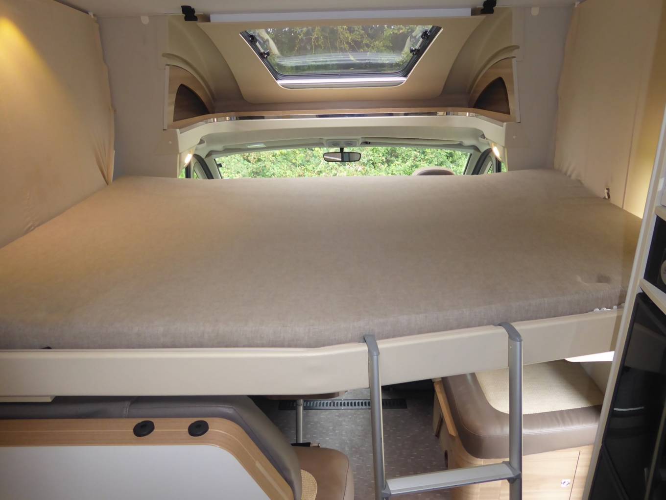 There is an electric drop down transverse double bed above the leisure/dining area.