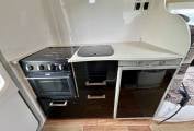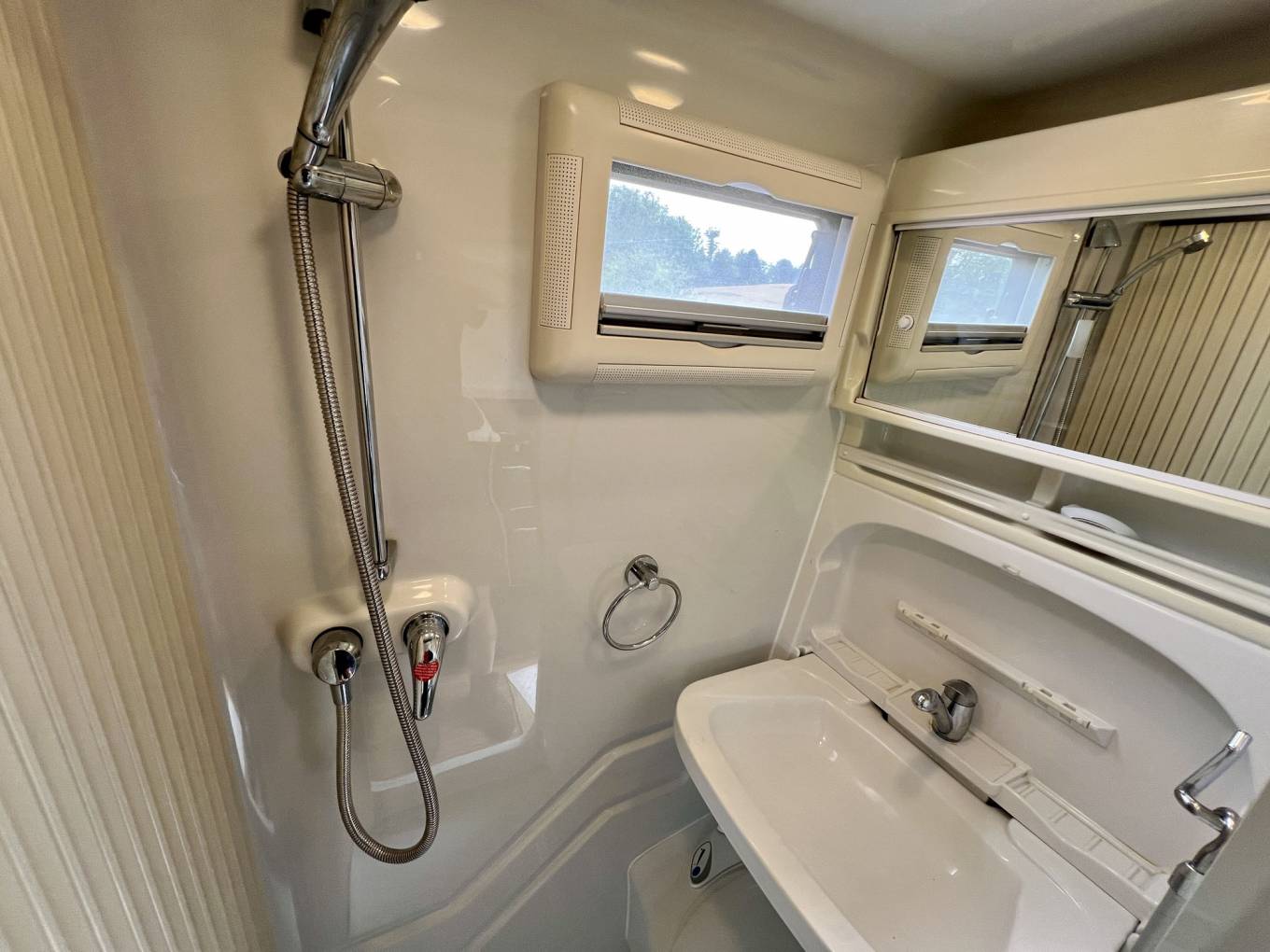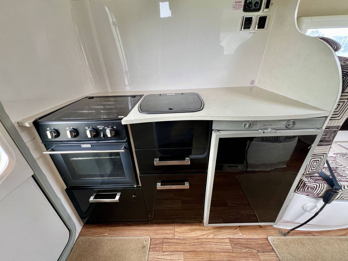The R40 is well equipped, with onboard water tanks, Webasto diesel heating and hot water, gas hob, oven and grill, fridge, toilet, vanity sink, shower. Powered by the 120bhp Citroen Dispatch through a 6 speed gearbox, the R40 also has cab air conditioning and rear view camera.