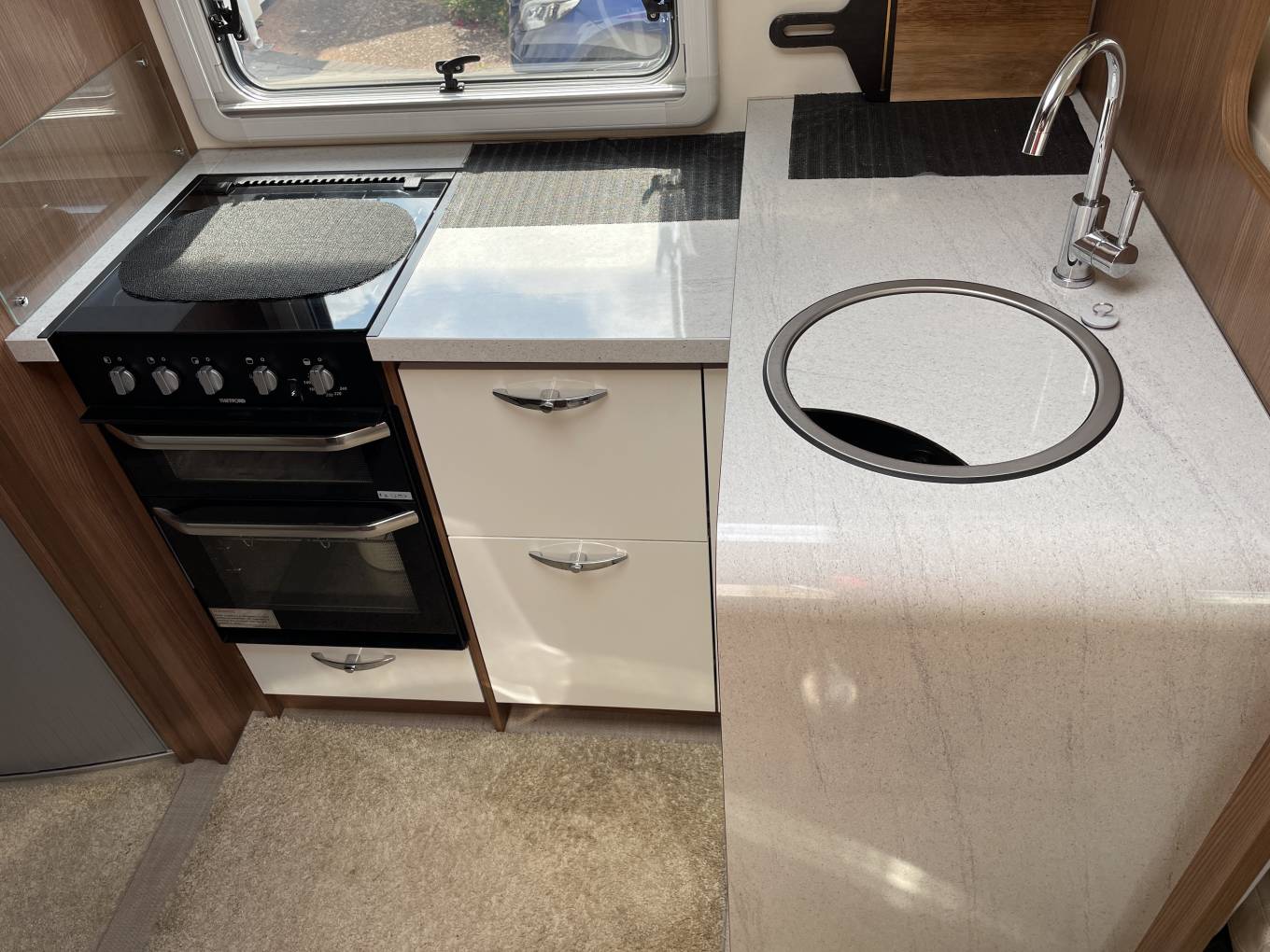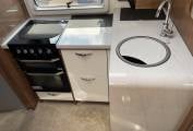tap, a full-sized oven & grill with 3 gas burner hob. Opposite is a large
