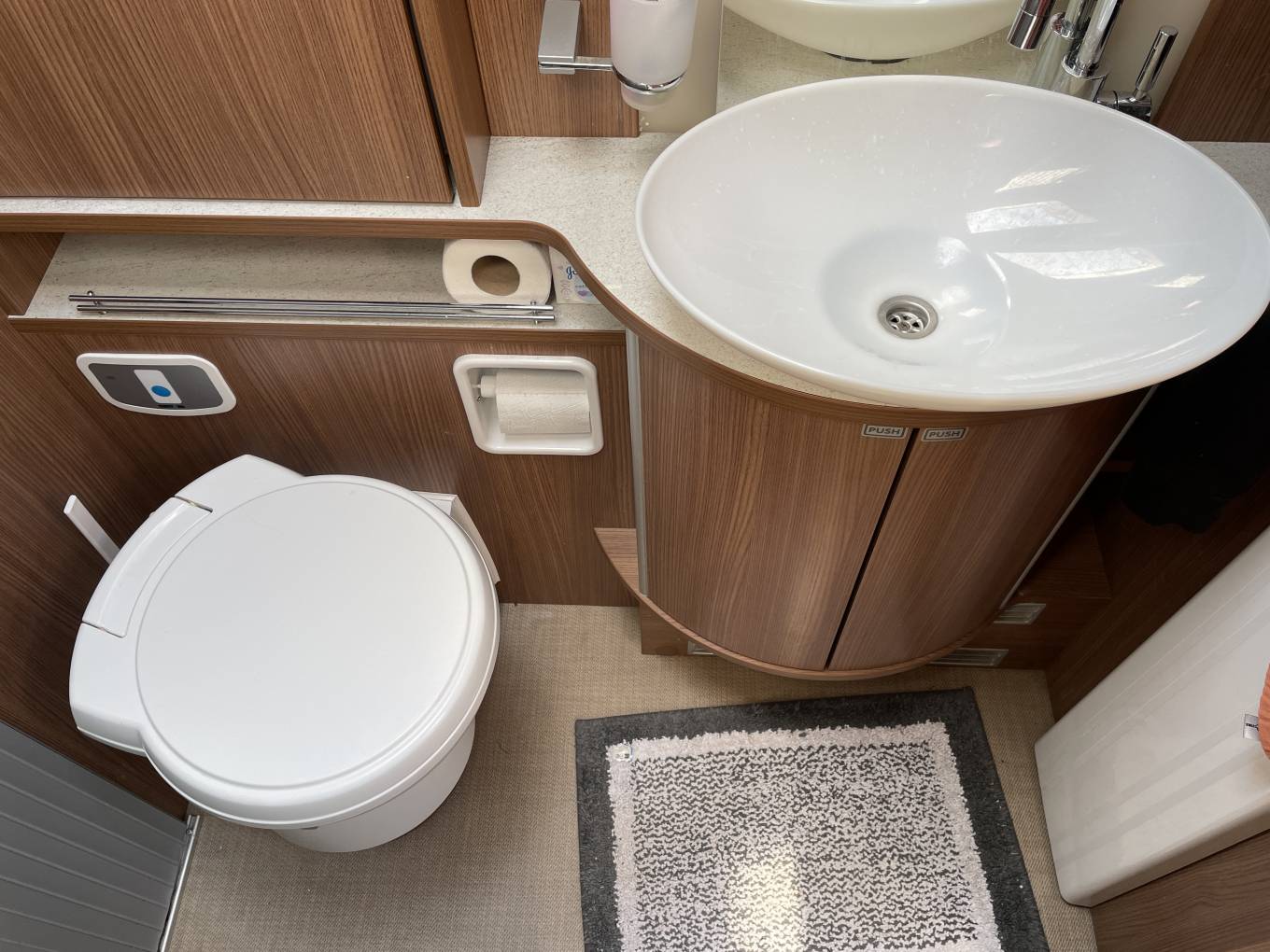 passenger side with a sliding door, a Thetford w/c, large oval sink with