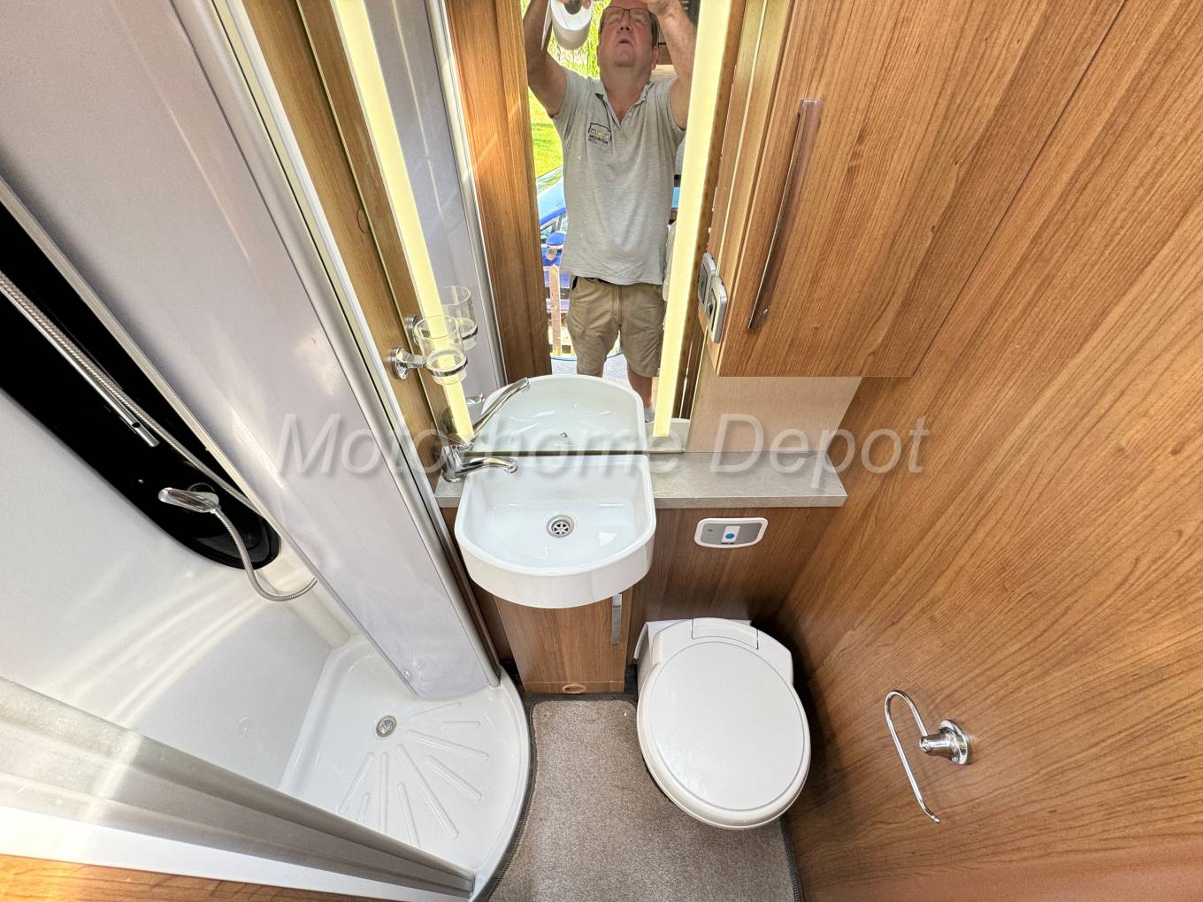 consists of a built-in washbasin with chrome mixer tap, a Thetford cassette