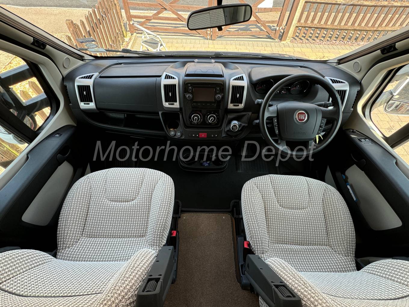 This ever popular Rear Lounge model of the Auto-Trail Apache 634, built on a Fiat Ducato chassis with a 2.3 TD 130 BHP with 6 speed manual gearbox. Registered in 05/18 and with only 6470 miles the current owners have had the vehicle from new, it has been Hab checked ever year with Marquis the last 05/24. 3 mechanical services the last being 05/22. The Cab benefits from: Air Conditioning; Cruise Control; Electric Windows Front; Electric adjustable & Heated Mirrors; Multi-function steering wheel; Remis Blinds to the front & side windows; Media centre incorporating CD player Radio, Aux in & USB, Bluetooth phone and music; Tom-Tom Navigation, reversing camera screen. The front seats both have arm rests and can rotate to face the rear while relaxing.