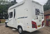 Additional features include a reversing camera, radio, swivel seat, heating, habitation air conditioning, an aerial, an awning/canopy, and a bike rack for 2 bikes. The motorhome also comes with 2 gas bottles (1 x 6kg and 1 x 13kg), a microwave, a toilet, 2 sets of keys.