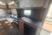 This Luxury Motorhome also comes with a roll out canopy, built in blinds and fly screens, reverse camera, cab air conditioning, passenger and driver airbags, cruise control, Alde heating and a solar panel.