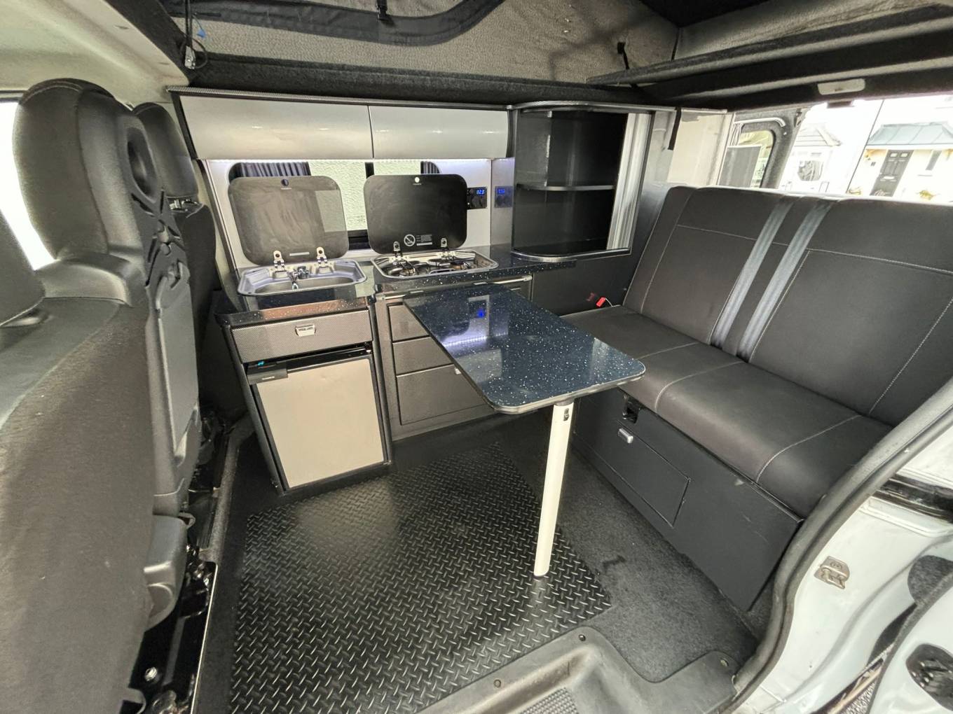 Features you will find in the camper include; Front Passenger Swivel Seat, 2 Sets of Keys, Rock and Roll Double Bed, Pop Top Roof/Bed, Gas Hob Rings x2, Cold Water Sink, Table for inside, Electric Windows and Mirrors, Gas Bottle, Fridge, Alloy Wheels, Reversing Sensors, Tow Bar.