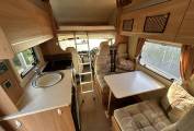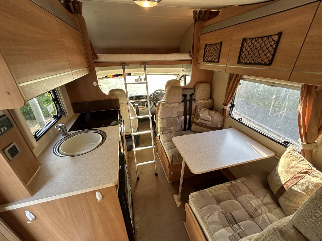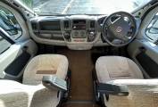 Layout - We start at the rear of the motorhome, where you will find the U-shaped lounge, the perfect spot for relaxing and taking in the surrounding views that you get with the large surrounding windows, this lounge area converts into a double bed with ease and the interior comes in very good condition. Around the lounge area you have plenty of storage and the cupboards are also in great condition.