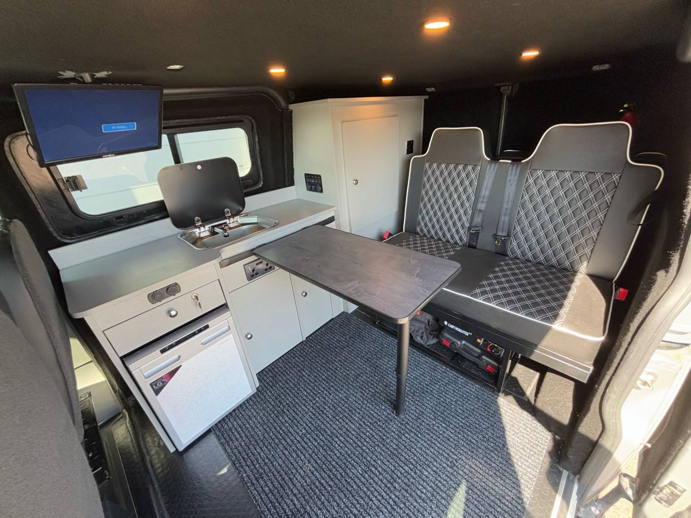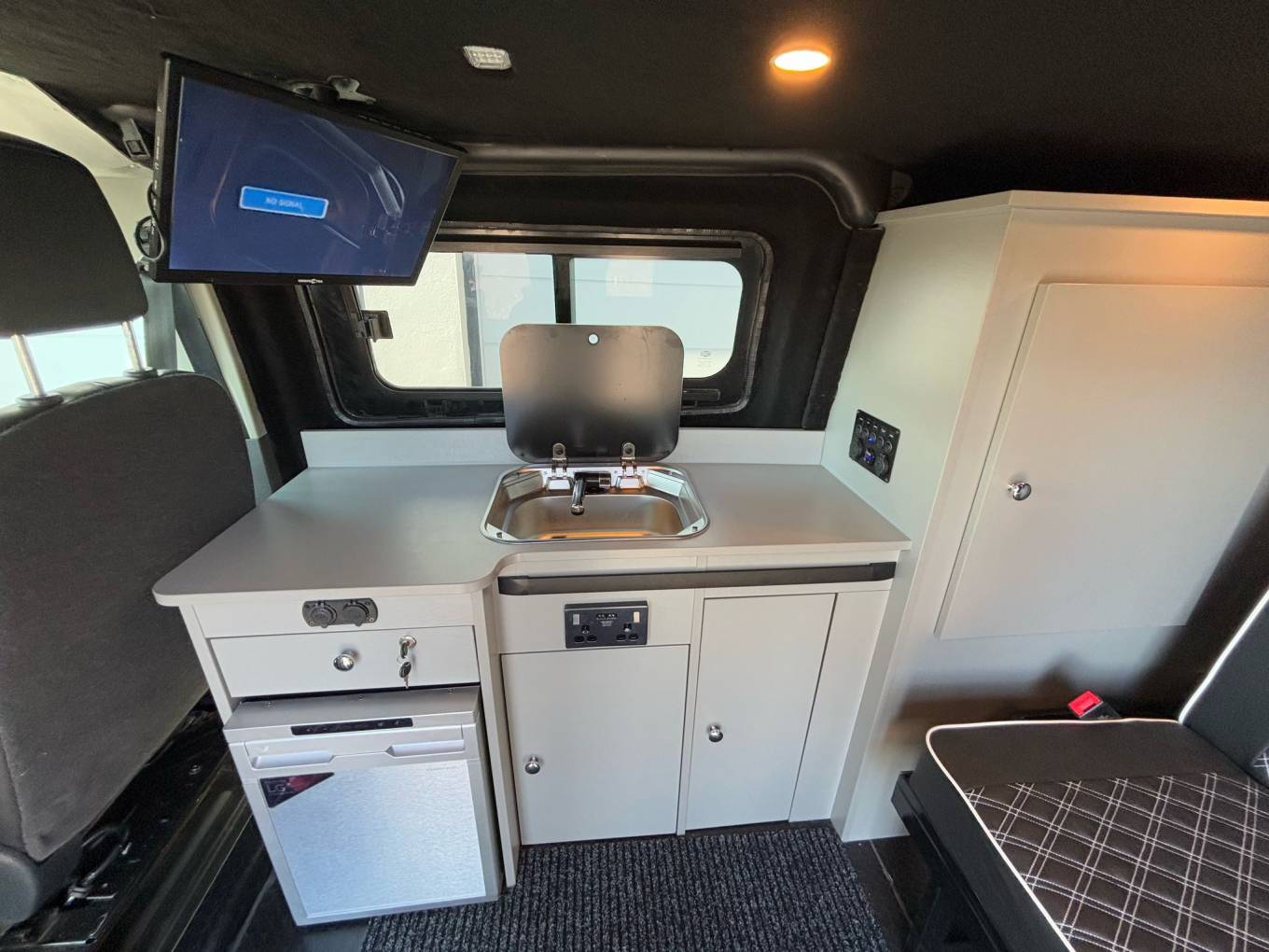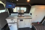The body work is in fantastic condition and really helps this camper stand out from the crowd. This camper also has excellent service history and the MOT is valid until 17/7/25. In the front cab there are Three seats and an additional Two travelling seats in the back allowing for Five people to be safely transported in this Camper at any one time. The bed in the back is BRAND NEW! a very familiar and easy to use Rock & Roll bed has just been fitted in the ford giving perfect space in the Habitation area and an ideal sleeping space at night.