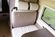 Aesthetically, leatherette seats, satin finish cupboard facings and surfaces, with spot, strip and upper and lower LED lights confer a quality feel to time spent inside the motorhome.