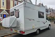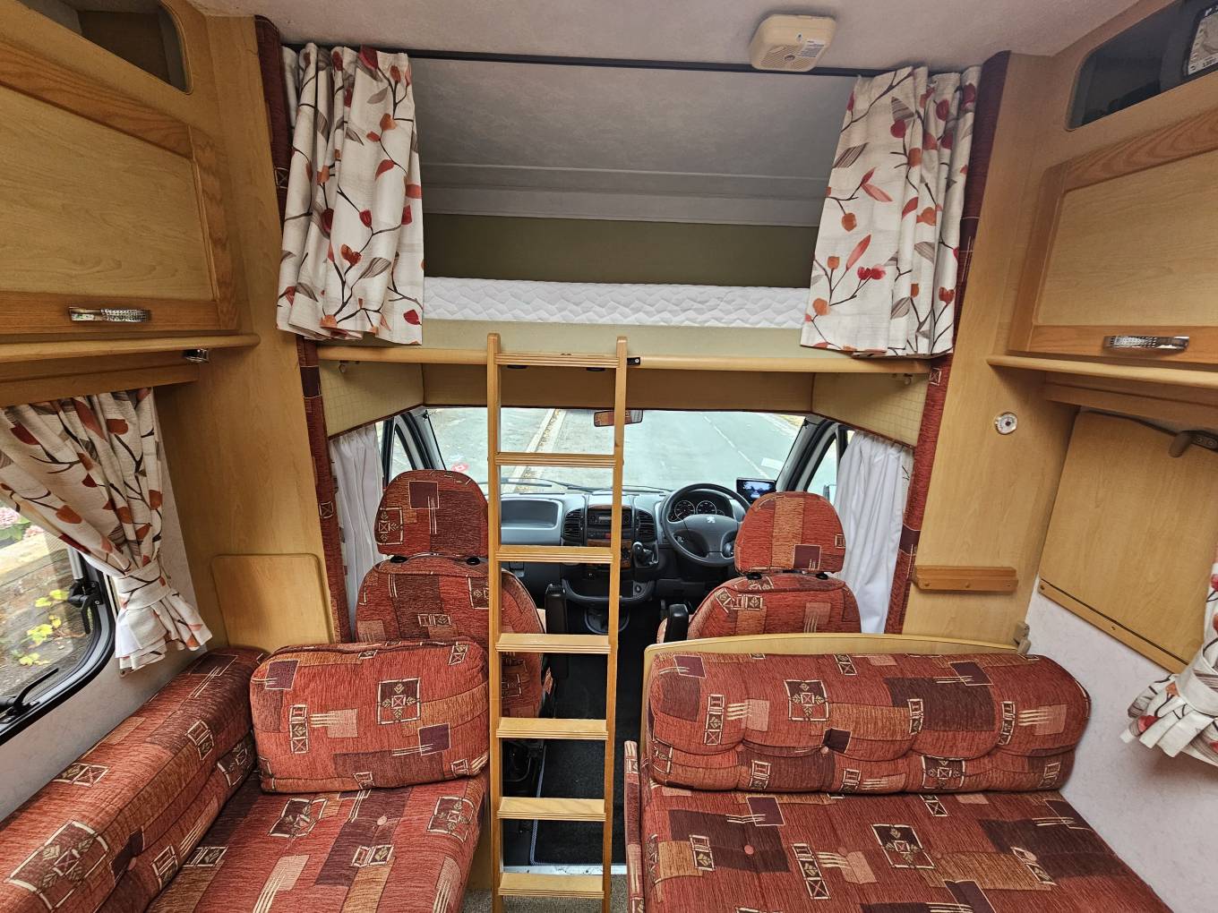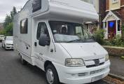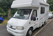 Built on a Peugeot Boxer chassis, this motorhome has a weight of 3,500 kg and offers sleeping space for up to 4 people. The layout includes an over-cab double bed and a dinette that converts into another double bed, with 4 seat belts available for safety.
