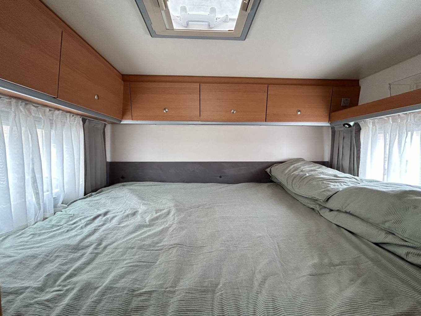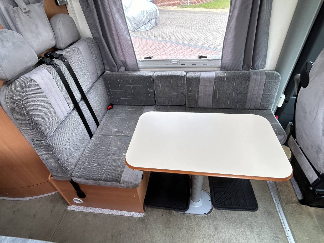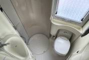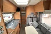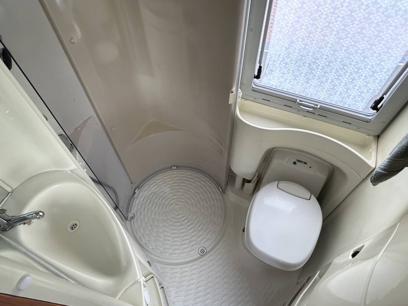 The Sunliner motorhome is extremely comfortable to sleep in. At the rear do you have a large transverse bed and you have a further double pulldown bed at the front of the motorhome. There is a good size washroom which features Thetford flush cassette toilet sink and shower. Heating and hot water are provided in this motorhome by the Truma Boiler system.