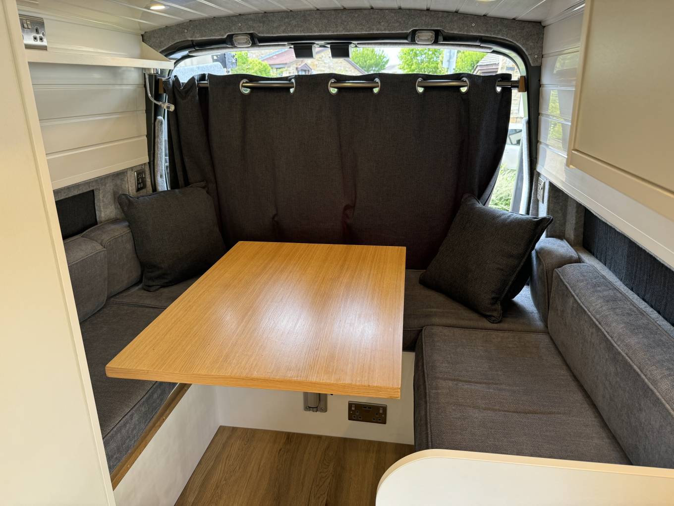 U shapes seating with lagoon mounted table that comfortably seats four people and quickly coverts into a generously sized double bed.