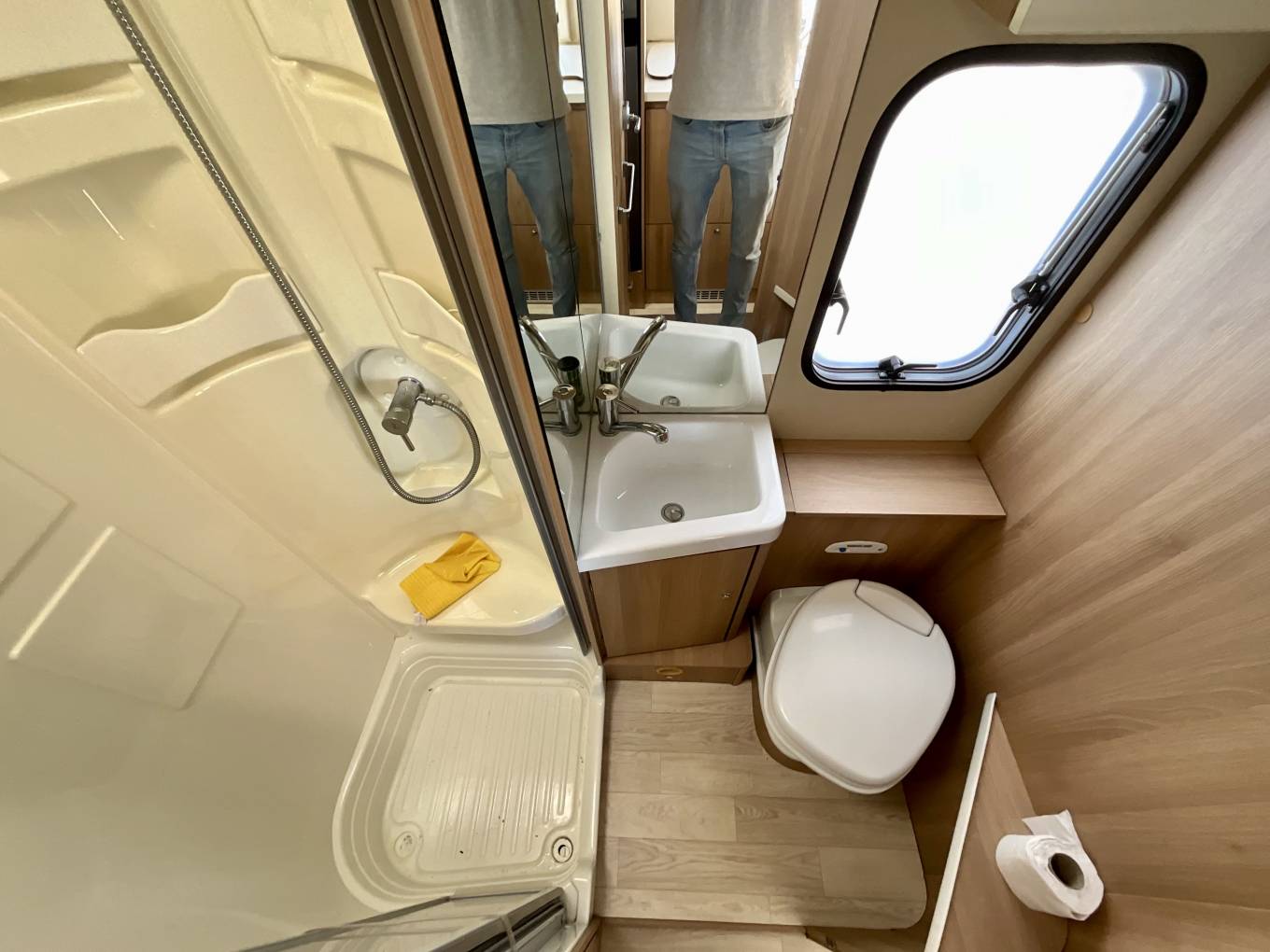 A central washroom comes equipped with shower, Thetford toilet with cassette, vanity unit, washbasin and storage throughout.