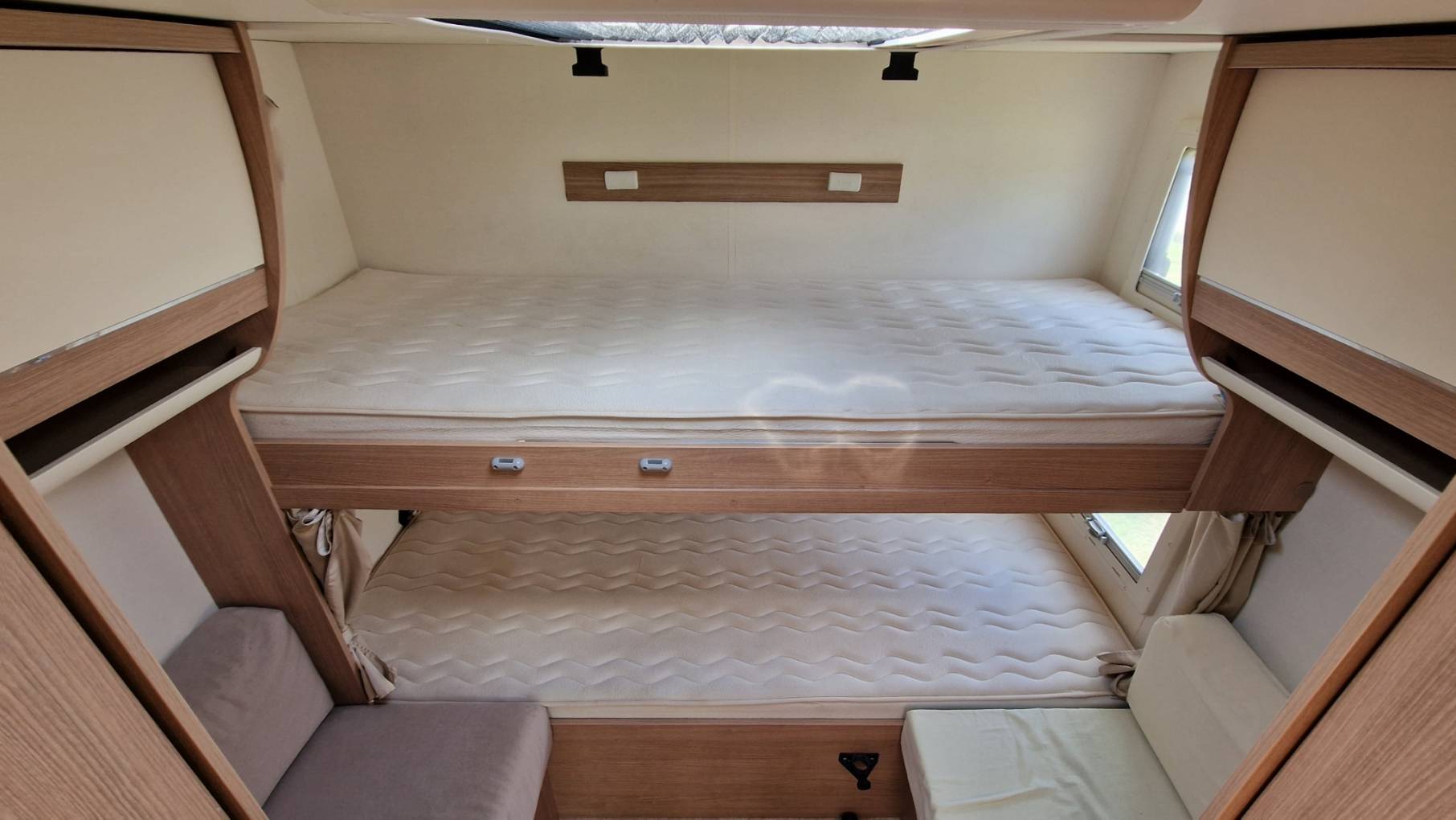 At the rear of the vehicle is an area with two bunk beds and two easy seats with a removable table which makes an ideal dedicated area for children. The seats can also be converted to form an extra berth/extension of the lower bunk.
